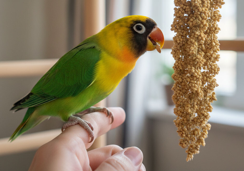 Mladí agapornisové se ochočují poměrně dobře, zejména pokud jsou ručně dokrmení. K ochočení vede trpělivost a klid. Začněte tím, že si na vás pták zvykne – mluvte tiše, seďte poblíž klece a odměňujte ho pamlsky.