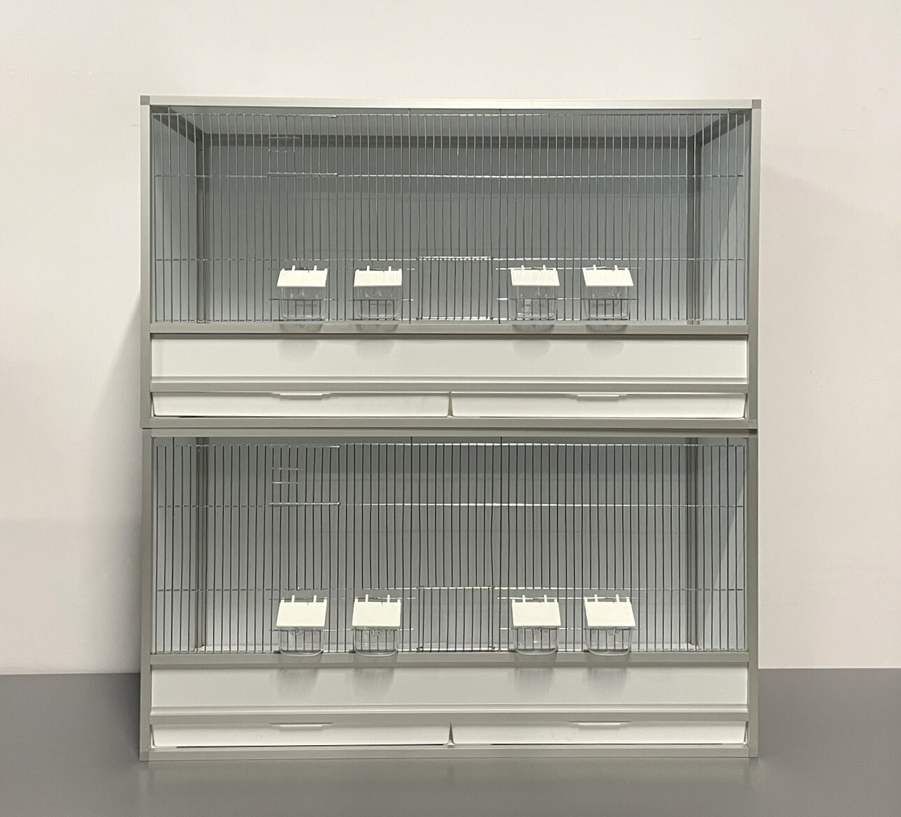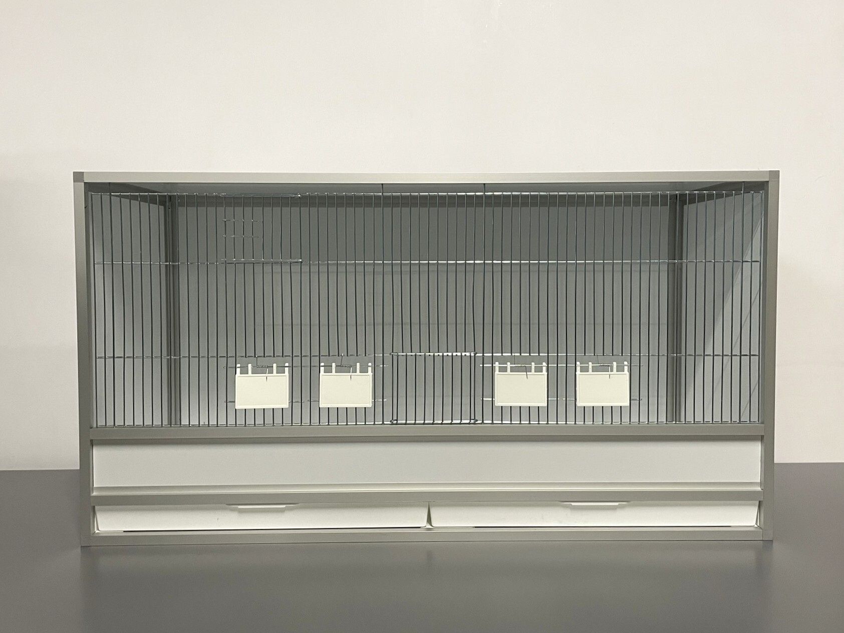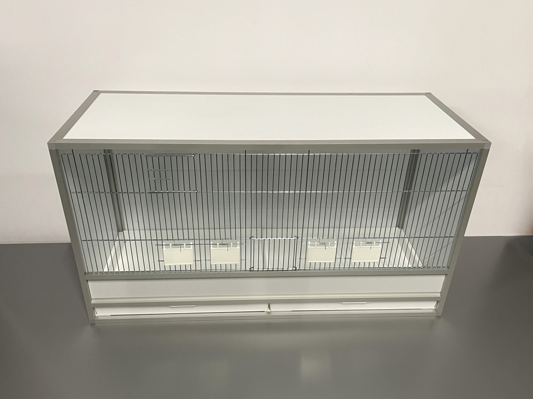 Přední stěna je tvořena vyjímatelnou mřížkou se čtyřmi krmítky. Součástí klece není napáječka. Doplňky lze přiobjednat https://www.aluhobby.cz/ptactvo/doplnky-pro-bednove-klece/ Velkou předností této bednové klece je především nízká váha 10 kg a vysoká pevnost. Díky nízké váze a použitým materiálům se snadno udržuje hygiena.