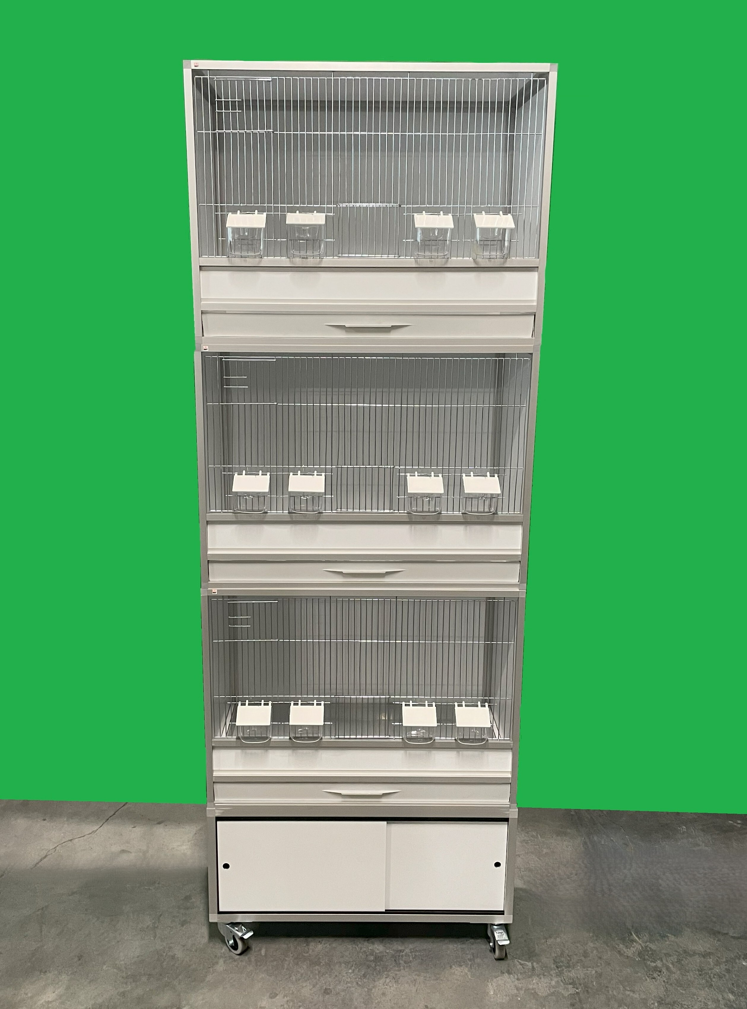 Rozměr jednotlivé klece je: v 54 x š 72,5 x h 41 cm. Celá sestava má pak rozměry v 205 x š 72,5 x h 41 cm.