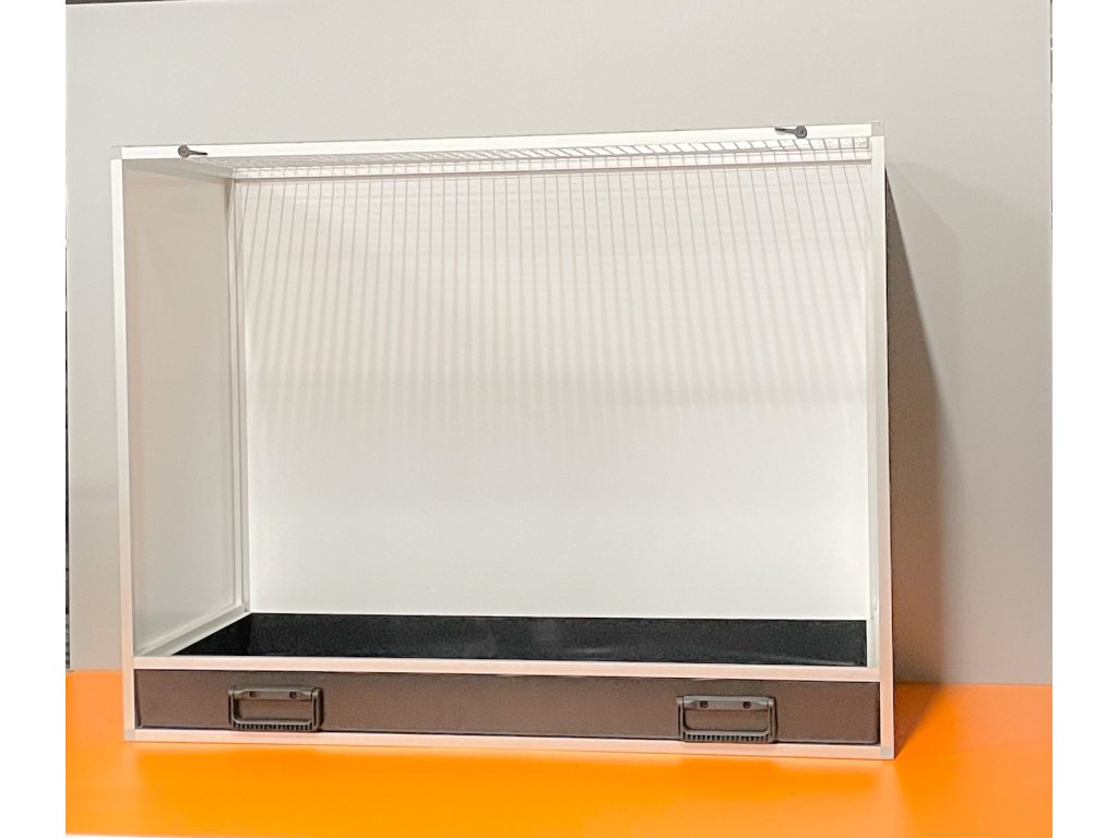 Bednová klec o rozměru: šířka 99 cm, hloubka 50 cm a výška 78,5 cm má hliníkovou konstrukci tvořenou z profilu 15x15mm s povrchovou úpravou stříbrný elox. Výplně klece jsou z hliníkového sendviče (hliník-plast-hliník). Jedná se o velice pevný a kvalitní materiál. Může být v barvě bílé, šedé, tmavě zelené a antracitové. Na přání i v barvě černé.