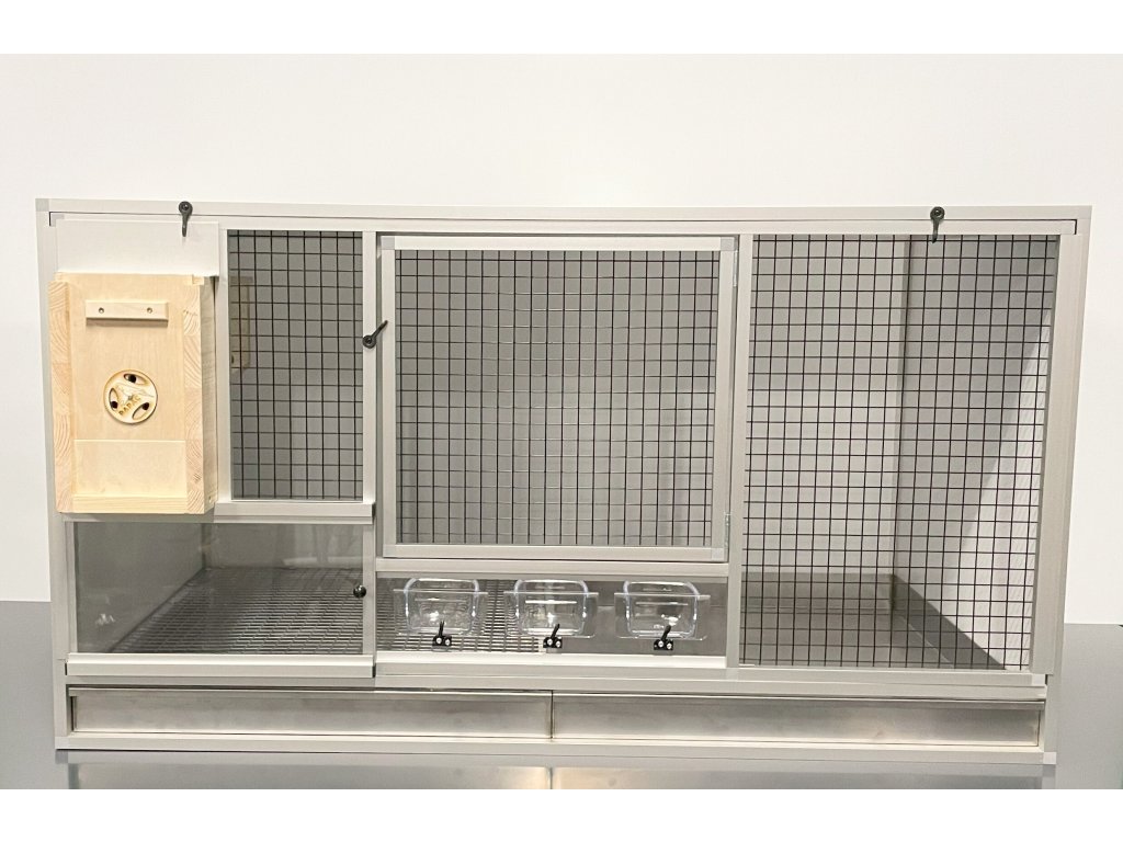 Důraz ze strany chovatele byl kladen především na udržení maximální čistoty v chovatelském zařízení. My v Aluhobby se snažíme, aby takové klece vydržely po generace. Budky do těchto klecí neprodáváme samostatně.