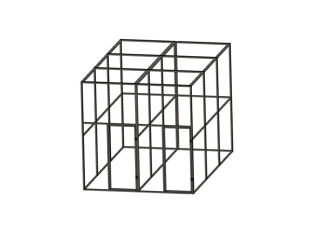 Rozměry voliéry šířka 200 cm, hloubka 303 cm, výška 200 cm. Jedná se o voliéru o dvou chovných boxech. Každý box má samostatná dvířka s výškou 120 cm a šířkou 50 cm. Voliéra v nabídce je potažena značkovým pletivem Esafort oko 19x19mm drát 1,45mm. Pletivo je vždy k rámům uchyceno značkovými nýty Bralo. Na žádost zákazníka můžeme pletivo zaměnit za jiné z naší nabídky. Rovněž použití profilů z povrchovou úpravou eloxováním je na vyžádání a je s příplatkem 10% z celkové ceny sestavy. Pokud bude sestava umístěna a uchycena na zeď budovy, není potřeba zadních panelů. Tyto panely budou z celkové ceny odečteny. V ceně není započtená doprava a případná montáž na místě.