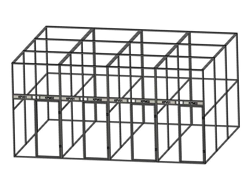 Rozměry voliéry šířka 400 cm, hloubka 303 cm, výška 200 cm. Jedná se o voliéru o čtyřech chovných boxech. Každý box je vybaven dvěma otočnými krmnými pulty. První krmný pult je s jednou miskou o obsahu 0,75l a je určený pro vodu. Druhý krmný pult má dvě misky o obsahu 2 x 0,35l určené pro krmivo. Použití dvou krmných pultů v každém boxu se částečně zamezí znečišťování vody krmivem. Krmné pulty jsou z 2 mm hliníkového plechu což činí pult pevným a takřka bezúdržbovým. Voliéra v nabídce je potažena značkovým pletivem Esafort oko 19x19mm drát 1,45mm. Pletivo je vždy k rámům uchyceno značkovými nýty Bralo. Na žádost zákazníka můžeme pletivo zaměnit za jiné z naší nabídky. Rovněž použití profilů z povrchovou úpravou eloxováním je na vyžádání a je s příplatkem 10% z celkové ceny. Pokud bude sestava umístěna a uchycena na zeď budovy, není potřeba zadních panelů. Tyto panely budou z celkové ceny odečteny. V ceně není započtená doprava a případná montáž na místě.