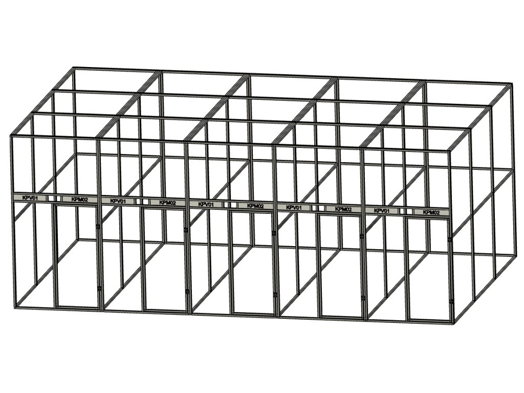 Rozměry voliéry šířka 500 cm, hloubka 303 cm, výška 200 cm. Jedná se o voliéru o pěti chovných boxech. Každý box je vybaven dvěma otočnými krmnými pulty. První krmný pult je s jednou miskou o obsahu 0,75l a je určený pro vodu. Druhý krmný pult má dvě misky o obsahu 2 x 0,35l určené pro krmivo. Použití dvou krmných pultů v každém boxu se částečně zamezí znečišťování vody krmivem. Krmné pulty jsou z 2 mm hliníkového plechu což činí pult pevným a takřka bezúdržbovým. Voliéra v nabídce je potažena značkovým pletivem Esafort oko 19x19mm drát 1,45mm. Pletivo je vždy k rámům uchyceno značkovými nýty Bralo. Na žádost zákazníka můžeme pletivo zaměnit za jiné z naší nabídky. Rovněž použití profilů z povrchovou úpravou eloxováním je na vyžádání a je s příplatkem 10% z celkové ceny. Pokud bude sestava umístěna a uchycena na zeď budovy, není potřeba zadních panelů. Tyto panely budou z celkové ceny odečteny. V ceně není započtená doprava a případná montáž na místě.