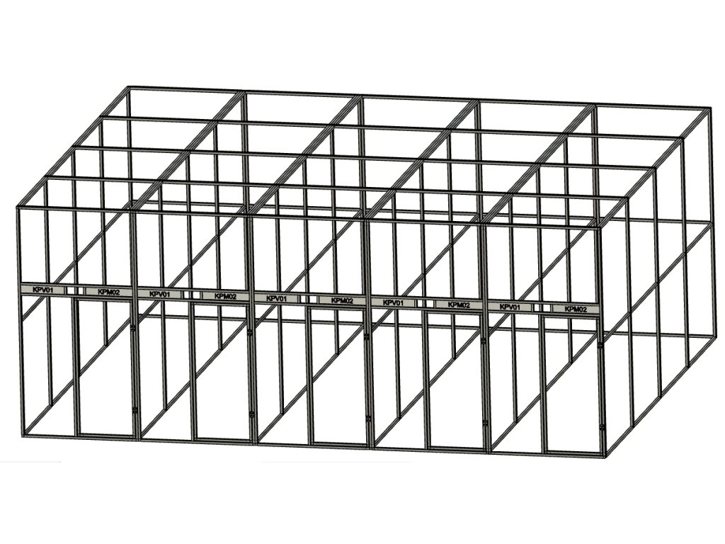 Rozměry voliéry šířka 500 cm, hloubka 402 cm, výška 200 cm. Jedná se o voliéru o pěti chovných boxech. Každý box je vybaven dvěma otočnými krmnými pulty. První krmný pult je s jednou miskou o obsahu 0,75l a je určený pro vodu. Druhý krmný pult má dvě misky o obsahu 2 x 0,35l určené pro krmivo. Použití dvou krmných pultů v každém boxu se částečně zamezí znečišťování vody krmivem. Krmné pulty jsou z 2 mm hliníkového plechu což činí pult pevným a takřka bezúdržbovým. Voliéra v nabídce je potažena značkovým pletivem Esafort oko 19x19mm drát 1,45mm. Pletivo je vždy k rámům uchyceno značkovými nýty Bralo. Na žádost zákazníka můžeme pletivo zaměnit za jiné z naší nabídky. Rovněž použití profilů z povrchovou úpravou eloxováním je na vyžádání a je s příplatkem 10% z celkové ceny. Pokud bude sestava umístěna a uchycena na zeď budovy, není potřeba zadních panelů. Tyto panely budou z celkové ceny odečteny. V ceně není započtená doprava a případná montáž na místě.