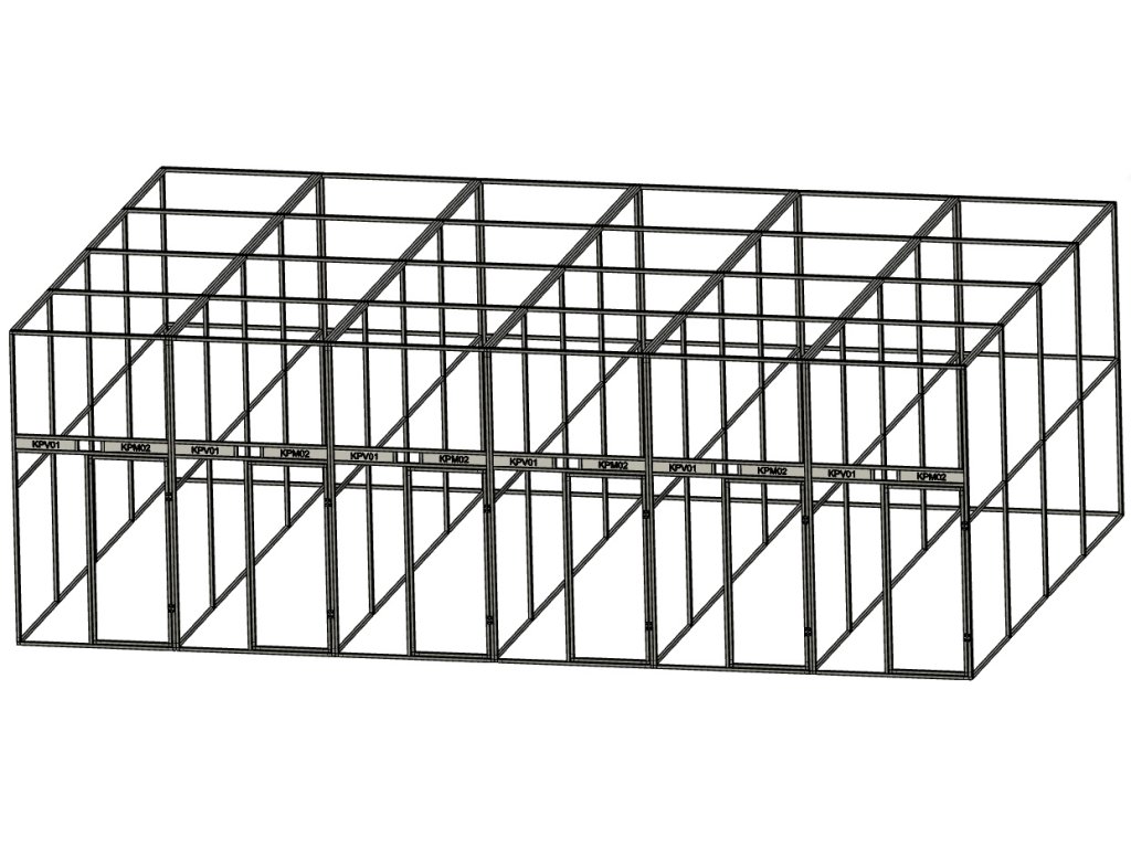 Rozměry voliéry šířka 600 cm, hloubka 400 cm, výška 200 cm. Jedná se o voliéru o šesti chovných boxech. Každý box je vybaven dvěma otočnými krmnými pulty. První krmný pult je s jednou miskou o obsahu 0,75l a je určený pro vodu. Druhý krmný pult má dvě misky o obsahu 2 x 0,35l určené pro krmivo. Použití dvou krmných pultů v každém boxu se částečně zamezí znečišťování vody krmivem. Krmné pulty jsou z 2 mm hliníkového plechu což činí pult pevným a takřka bezúdržbovým. Voliéra v nabídce je potažena značkovým pletivem Esafort oko 19x19mm drát 1,45mm. Pletivo je vždy k rámům uchyceno značkovými nýty Bralo. Na žádost zákazníka můžeme pletivo zaměnit za jiné z naší nabídky. Rovněž použití profilů z povrchovou úpravou eloxováním je na vyžádání a je s příplatkem 10% z celkové ceny. Pokud bude sestava umístěna a uchycena na zeď budovy, není potřeba zadních panelů. Tyto panely budou z celkové ceny odečteny. V ceně není započtená doprava a případná montáž na místě.