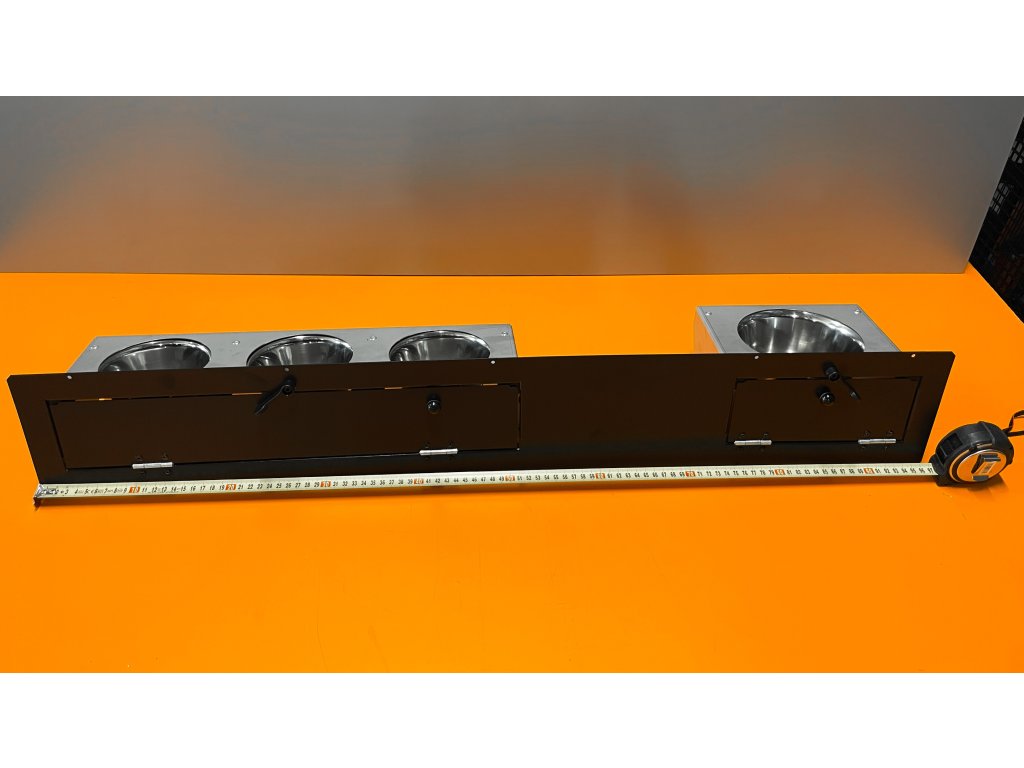 Dvojitý zásuvný celonerezový pult se vyznačuje především v kvalitě použitých materiálů a v provedení. Tento nerezový pult se vkládá do již připraveného otvoru o rozměru 150 x 970 mm. Síla nerezového plechu použitého na základní desku je 1 mm. Krmný pult dodáváme již ve smontovaném stavu. Rámeček je vyroben z nerezového plechu s otvory pro nýt nebo šroub.