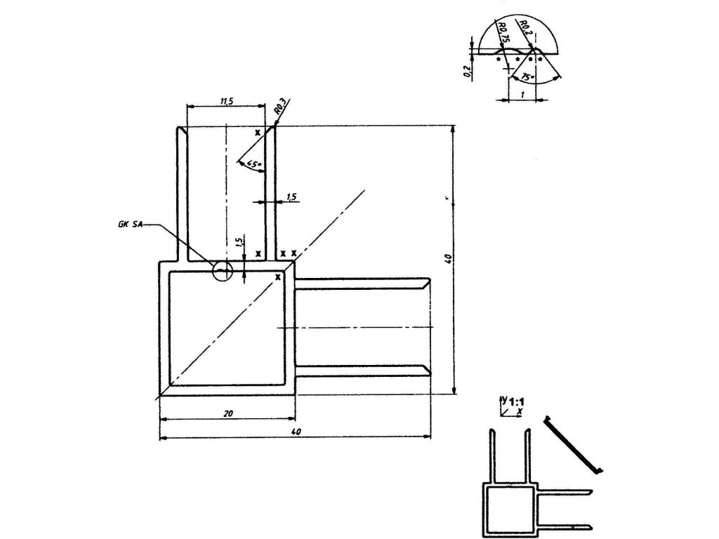 | Rozměr: | 20x20x1,5 mm, mezera mezi křidélky je 12 mm |