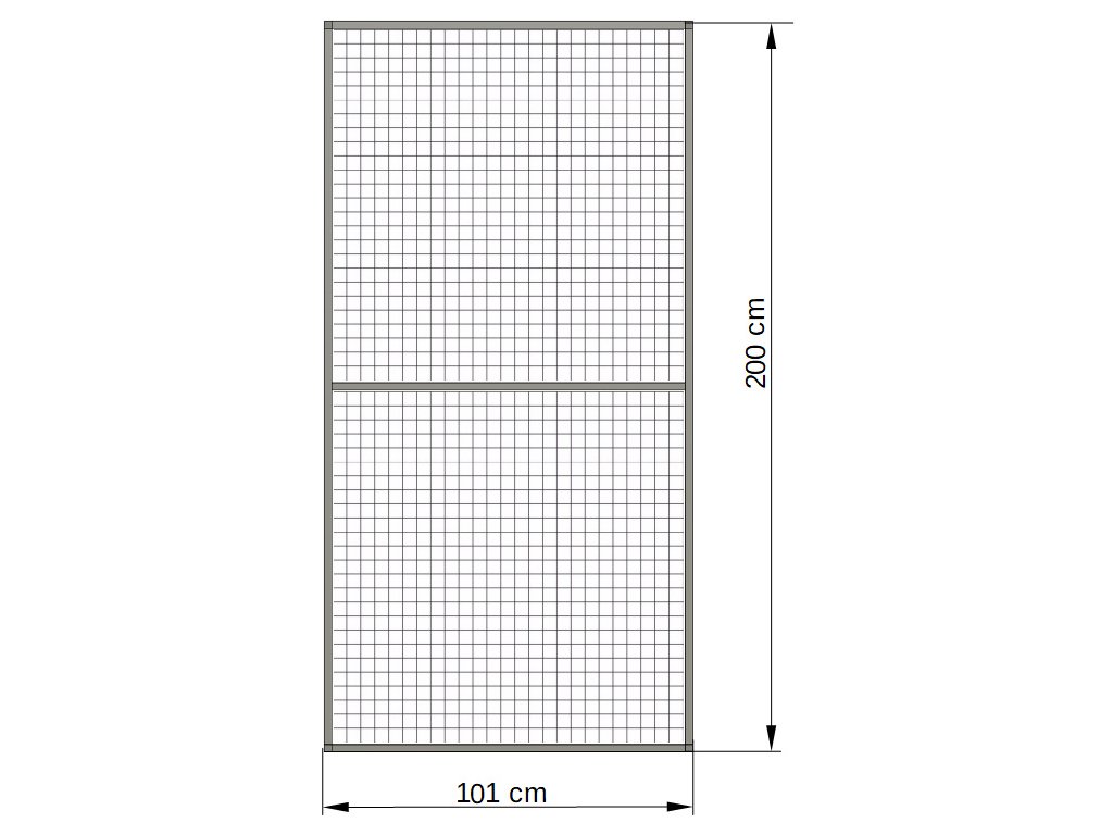 Tento rám se používá při samostatné stavbě voliéry. Rám je celohliníkový, potažen pletivem Esafort 19x19x1,45mm. Na přání zákazníka lze použit i jiná pletiva z naší nabídky.