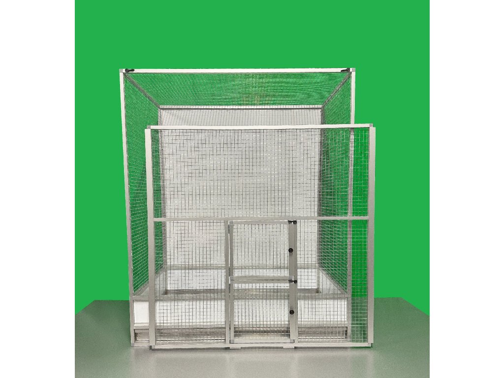Klec je vyrobena z eloxovaných hliníkových profilů. Zadní stěna je plná a jako výplň je použit hliníkový sendvič. Pletivo je kvalitní italské pletivo značky Esafort, oko 16x16, drát 1,2 mm.