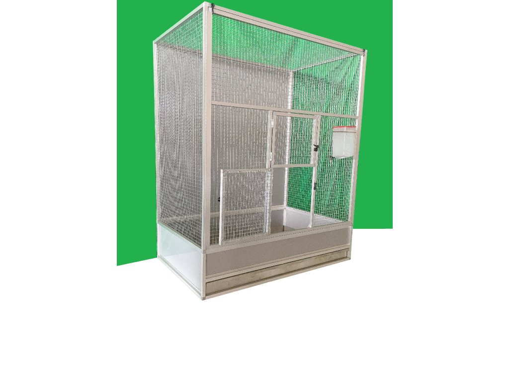 Klec je vyrobena z eloxovaných hliníkových profilů. Zadní stěna je plná a jako výplň je použit hliníkový sendvič. Pletivo je kvalitní italské pletivo značky Esafort, oko 16x16, drát 1,2 mm.