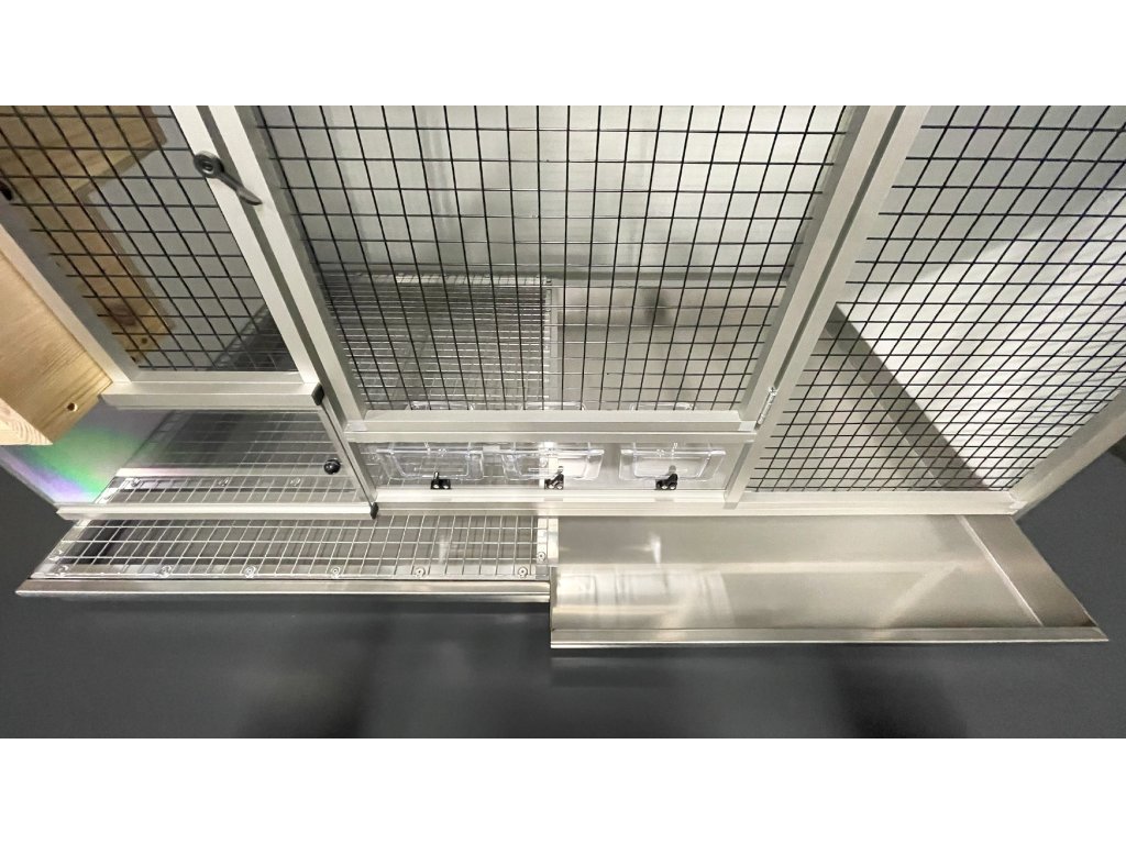 Důraz ze strany chovatele byl kladen především na udržení maximální čistoty v chovatelském zařízení. My se v Aluhobby snažíme, aby takové klece vydržely po generace. Budky do těchto klecí neprodáváme samostatně. Klec můžeme poslat již složenou tak, jak vidíte na fotografiích. Bohužel je potřeba počítat s vyšší cenou za dopravu. Pokud se klec pošle částečně rozložená, může se cena za dopravu výrazně snížit, obzvlášť při nákupu více klecí. Cena za dopravu bude citelnější při dopravě do zahraničí. Někdy může mít chovatelská místnost úzké dveře, ale i zde bychom doporučili neposílat klec složenou. Cena zůstává stejná u obou variant.