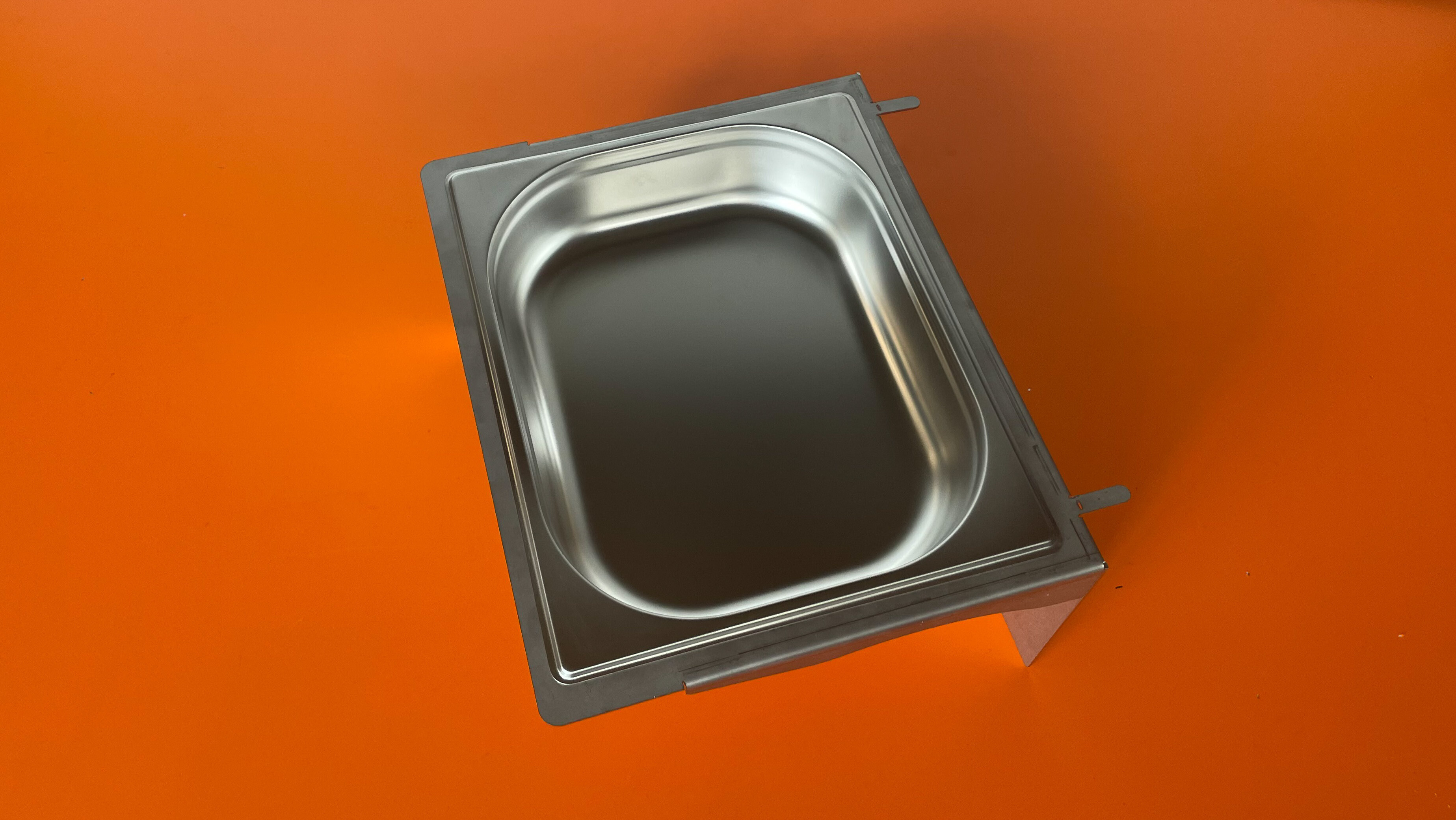 Nerezový rám/nosník je vyroben z nerezového plechu. Stěna, která se opírá o pletivo má rozměr 355 x 170 mm. Je to dostatečně velké plocha, aby zabránila průhybu pletiva při zavěšení. Koupací vaničku lze jednoduchým způsobem zavěsit na pletivo, rovněž lze i stejným způsobem vyjmout. Je velmi dobré v objednávce uvést do poznámek velikost oka v pletivu, případně i sílu drátů.