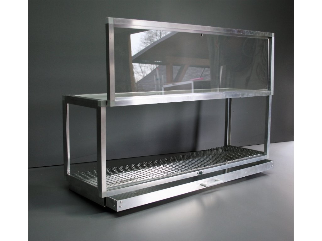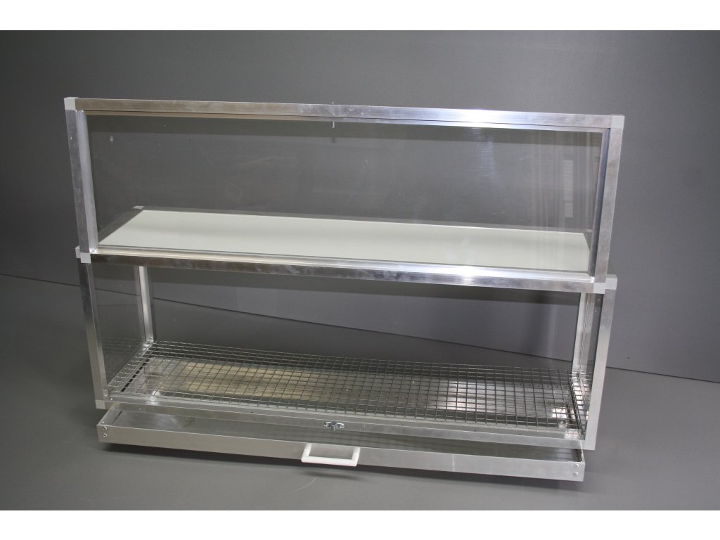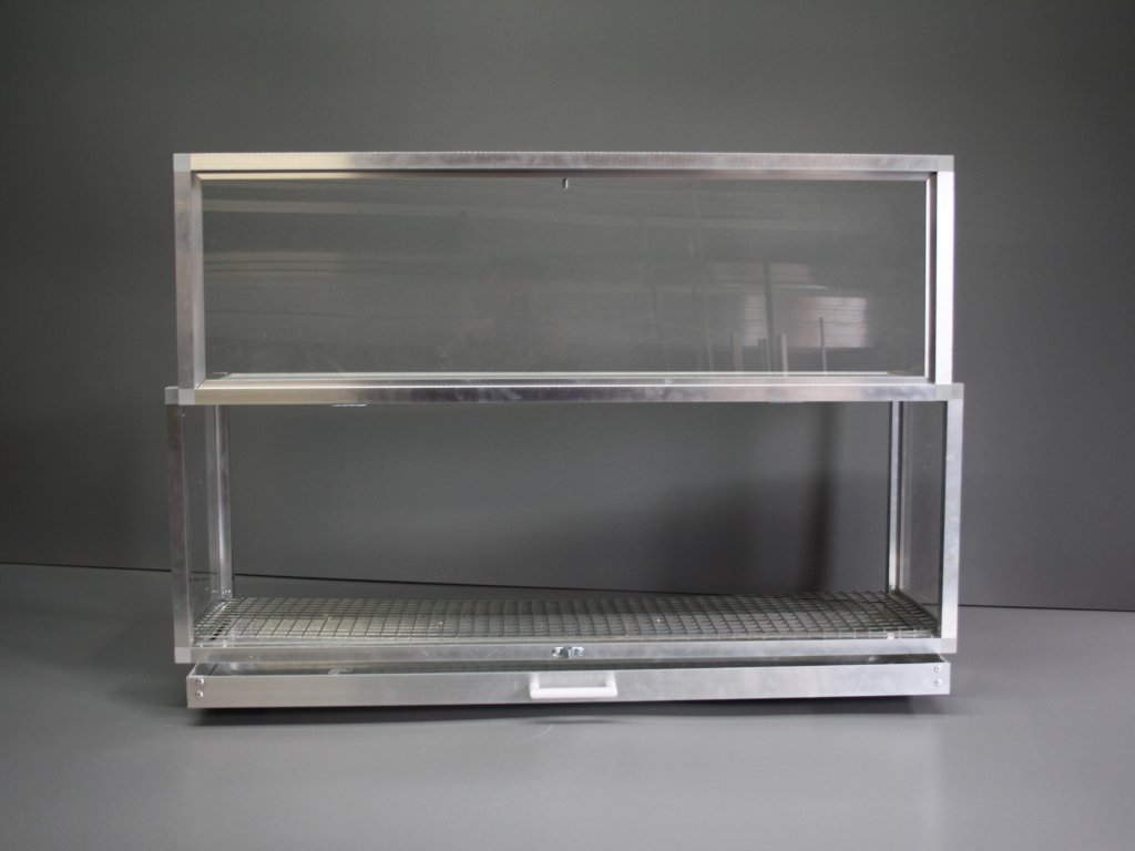 Hliníkové profily HJ20V, které jsou použity k výrobě, umožňují vložení plexiskla do stěn a hliníkového kompozitu na strop boxu, bez použití nýtů, což vypadá velmi efektně a z hlediska hygieny je to velmi praktické. Díky hliníkovému kompozitu na stropě boxu vzniká i pevný odkládací prostor. Plexisklo umožňuje chovateli sledovat chování ptactva při krmení. Součástí krmného boxu je i síto. Díky tomuto vloženému sítu nemají zvířata přístup k již jednou znehodnocenému krmivu. Krmivo pak padá volně do prostoru krmné chodby.