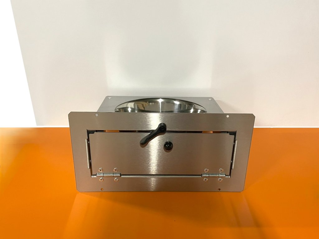 Zásuvný celonerezový pult se vyznačuje především v kvalitě použitých materiálů a v provedení. Tento nerezový pult se vkládá do již připraveného otvoru o rozměru 115 x 215 mm. Síla nerezového plechu použitého na základní desku je 1 mm. Krmný pult dodáváme již ve smontovaném stavu. Rámeček je vyroben z nerezového plechu s otvory pro nýt nebo šroub.
