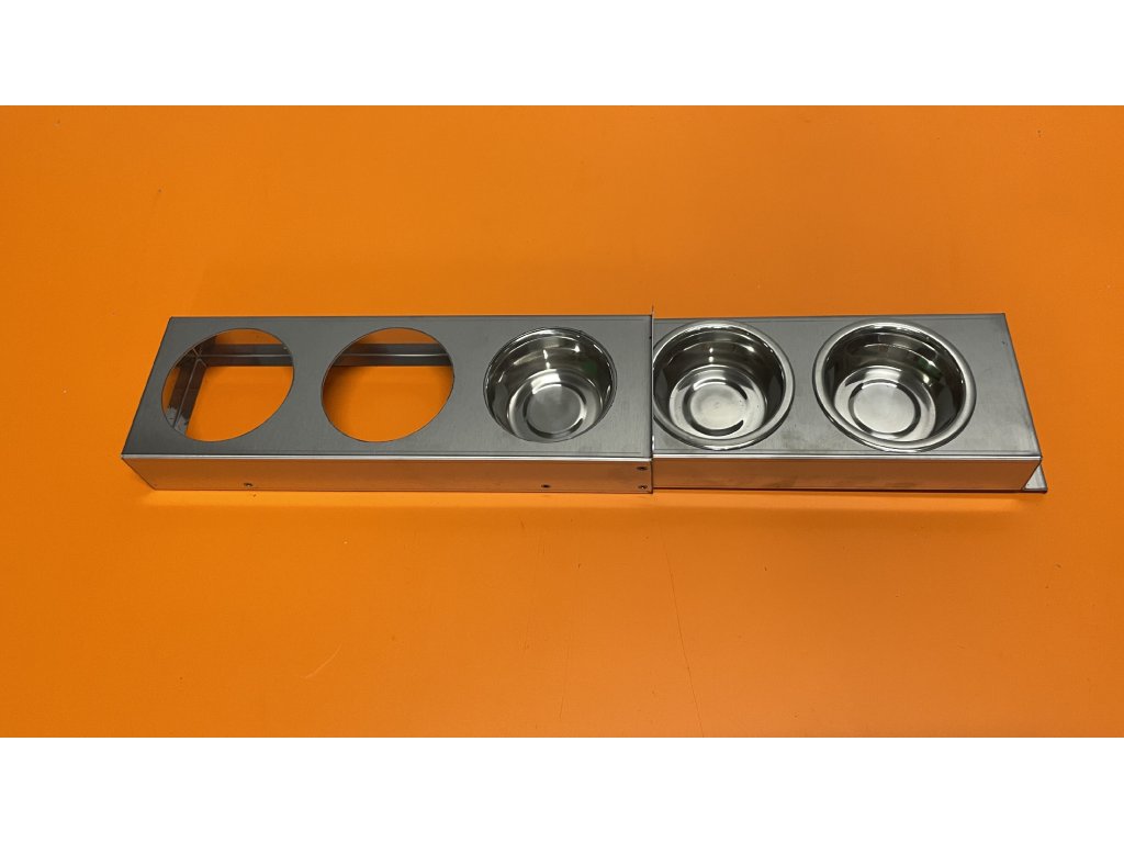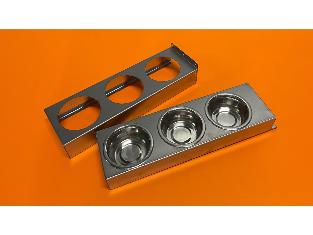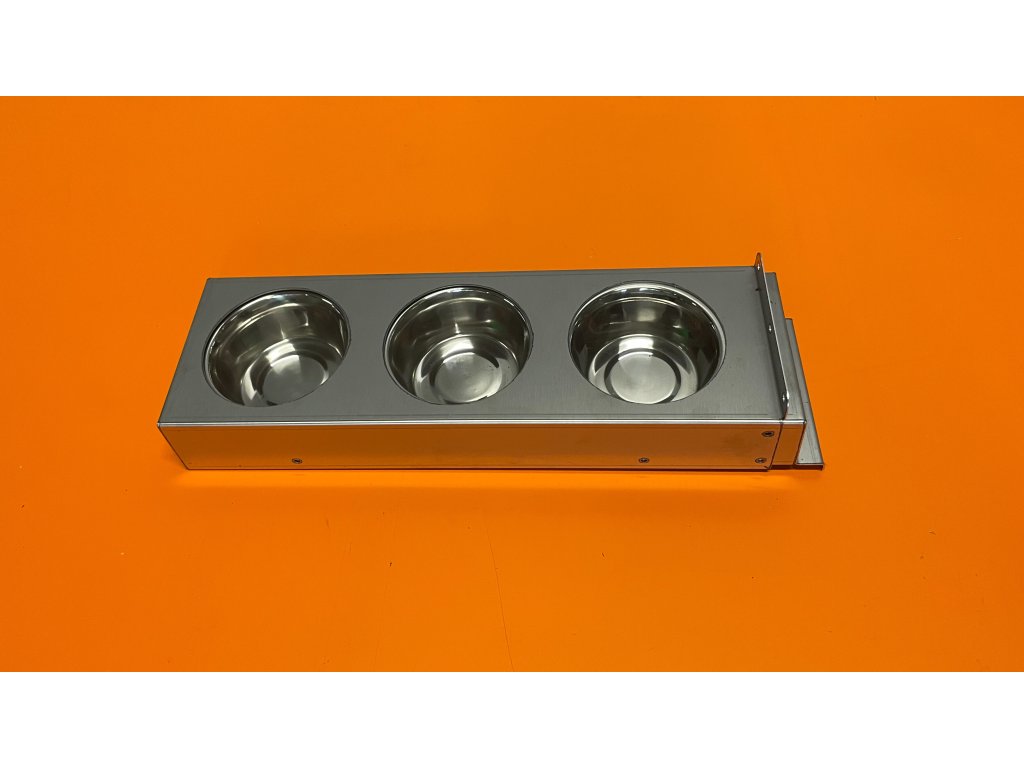 Celovýsuvný krmný pult se třemi miskami o obsahu 0,2 l.