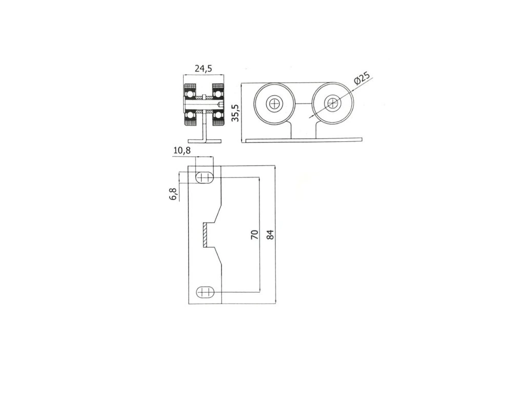 Průměr koleček 25 mm. Vhodný pro profil 30x30x2 mm.