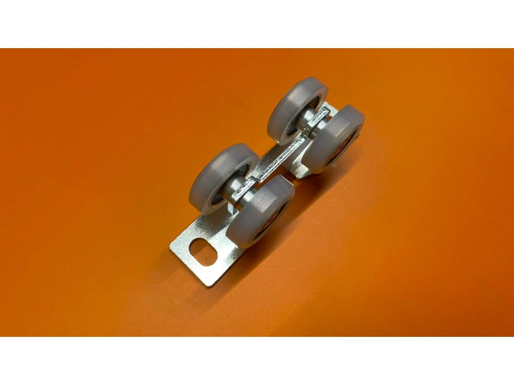Nosný vozík pro závěsné systémy. Nosný vozík může být použit pro zavěšení dveří vrat či skříně.