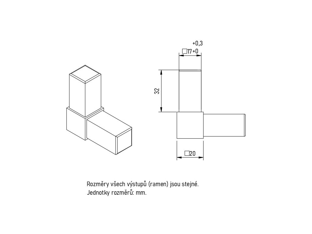 Tento typ spojky je vhodný pro hliníkové profily 20x20x1,5 mm.