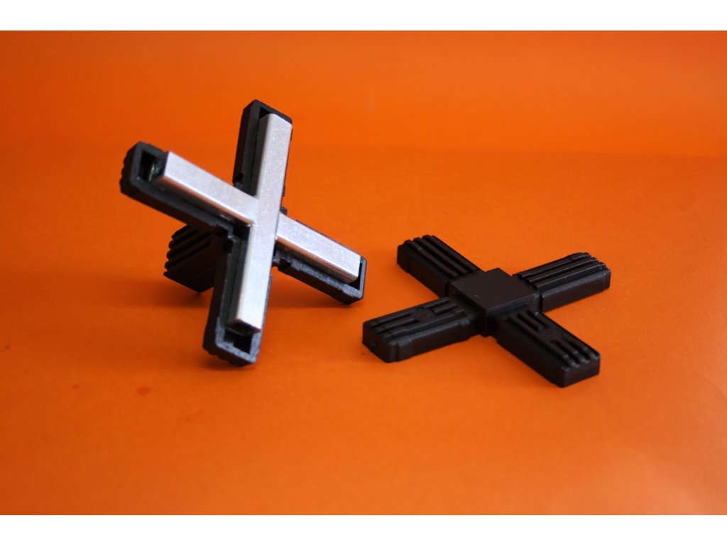 Plastové spojky s kovovým jádrem jsou výborným řešením pro spojování hliníkových profilů, kde se požaduje vysoká stabilita konstrukce.