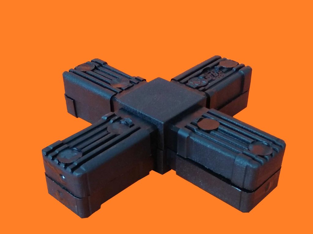 Plastové spojky s kovovým jádrem jsou skvělým řešením pro spojování hliníkových profilů, kde se požaduje vysoká stabilita konstrukce. Velkou výhodou je, že není nutné hliníkové profily náročně svařovat. Spojení hliníkových profilů se vyznačuje vysokou pevností a kompaktním vzhledem.