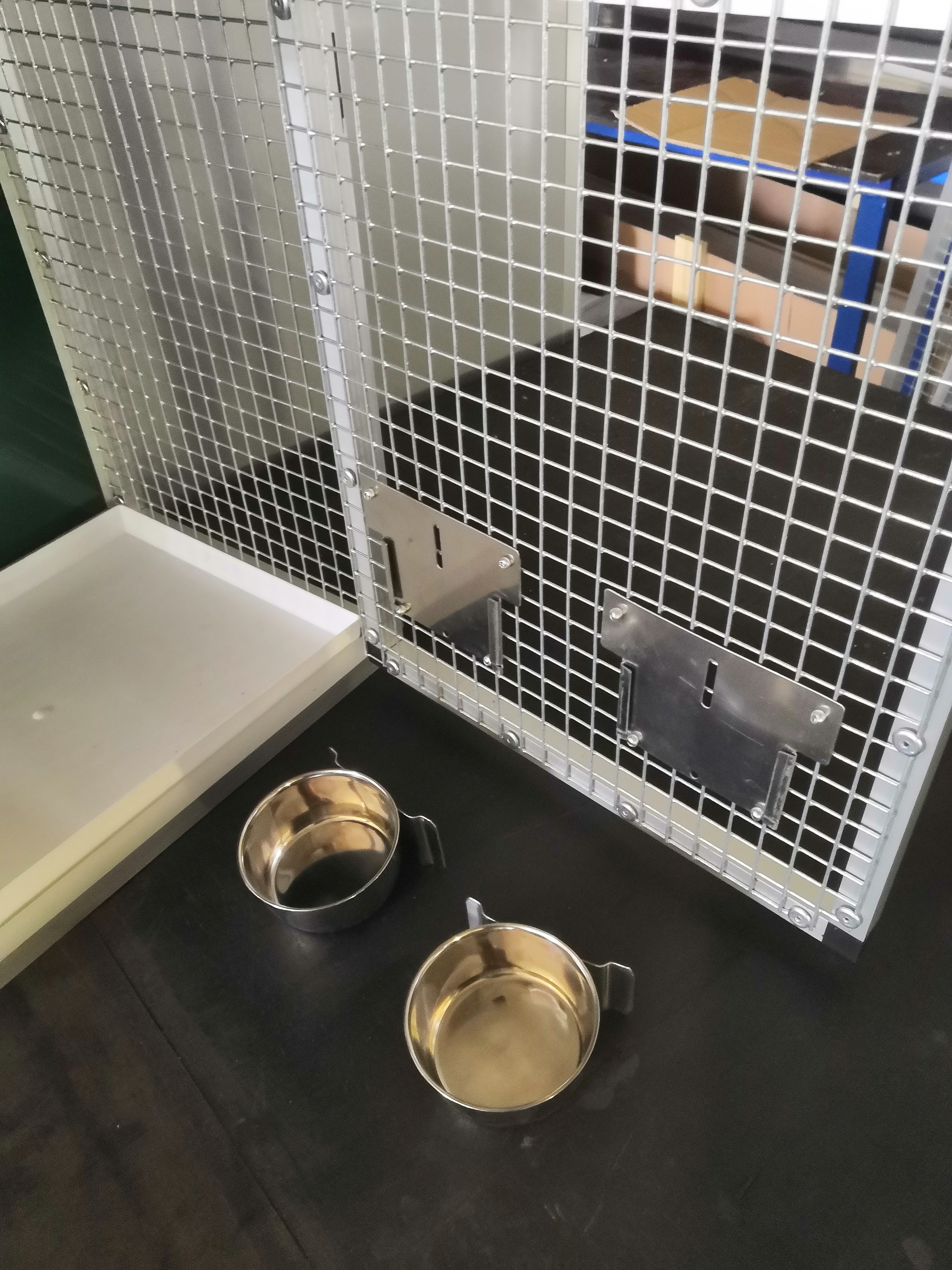 Přepravní klec s krmítky je vyrobena z profilu 20x20x1,5 mm s povrchovou úpravou eloxováním. Rozměry přepravní klece jsou šířka 44, hloubka 33, výška 50 cm. Výplně přepravky jsou vyrobeny z hliníkového sendviče. Použité pletivo Italský Esafort oko 19 x 19 drát 2,05mm. Přední dvířka jsou zabezpečena proti otevření šroubem s plastovou hlavou. Nerezová krmítka jdou při přepravě zvířete vysunou. Celková váha přepravky je 5,5kg.