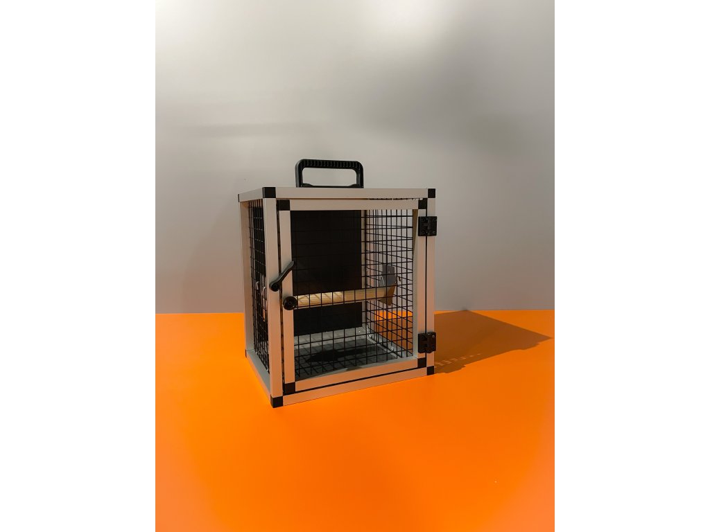 Rozměry přepravní klece: šířka 28 cm, hloubka 24 cm, výška 32 cm. Výplně přepravky jsou vyrobeny z hliníkového sendviče. Použité je italské pletivo Esafort oko 19x19 mm, drát 1,45 mm v barvě černé.