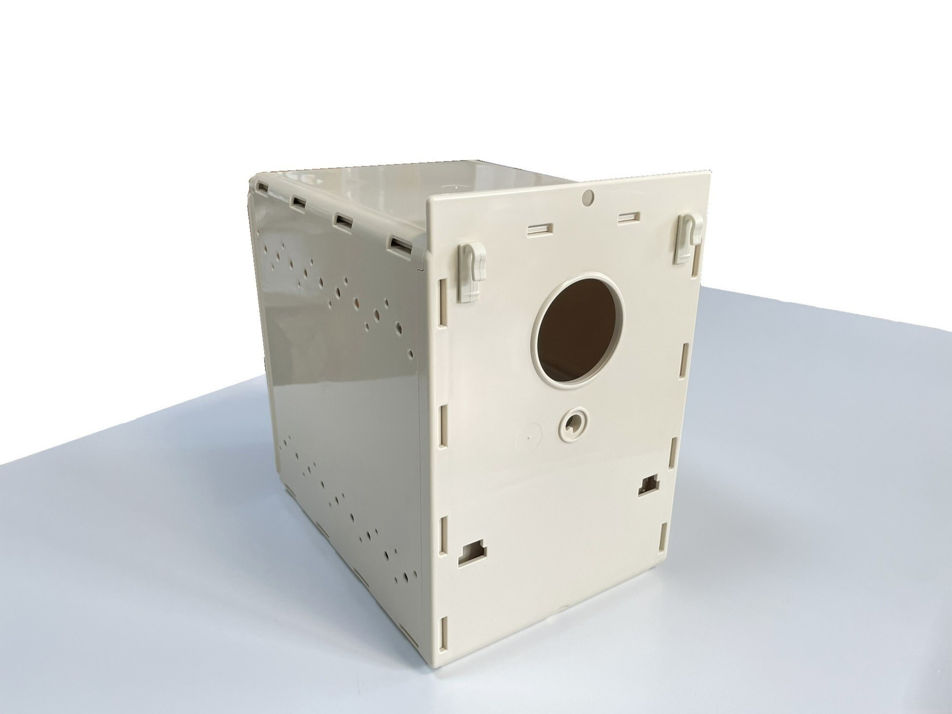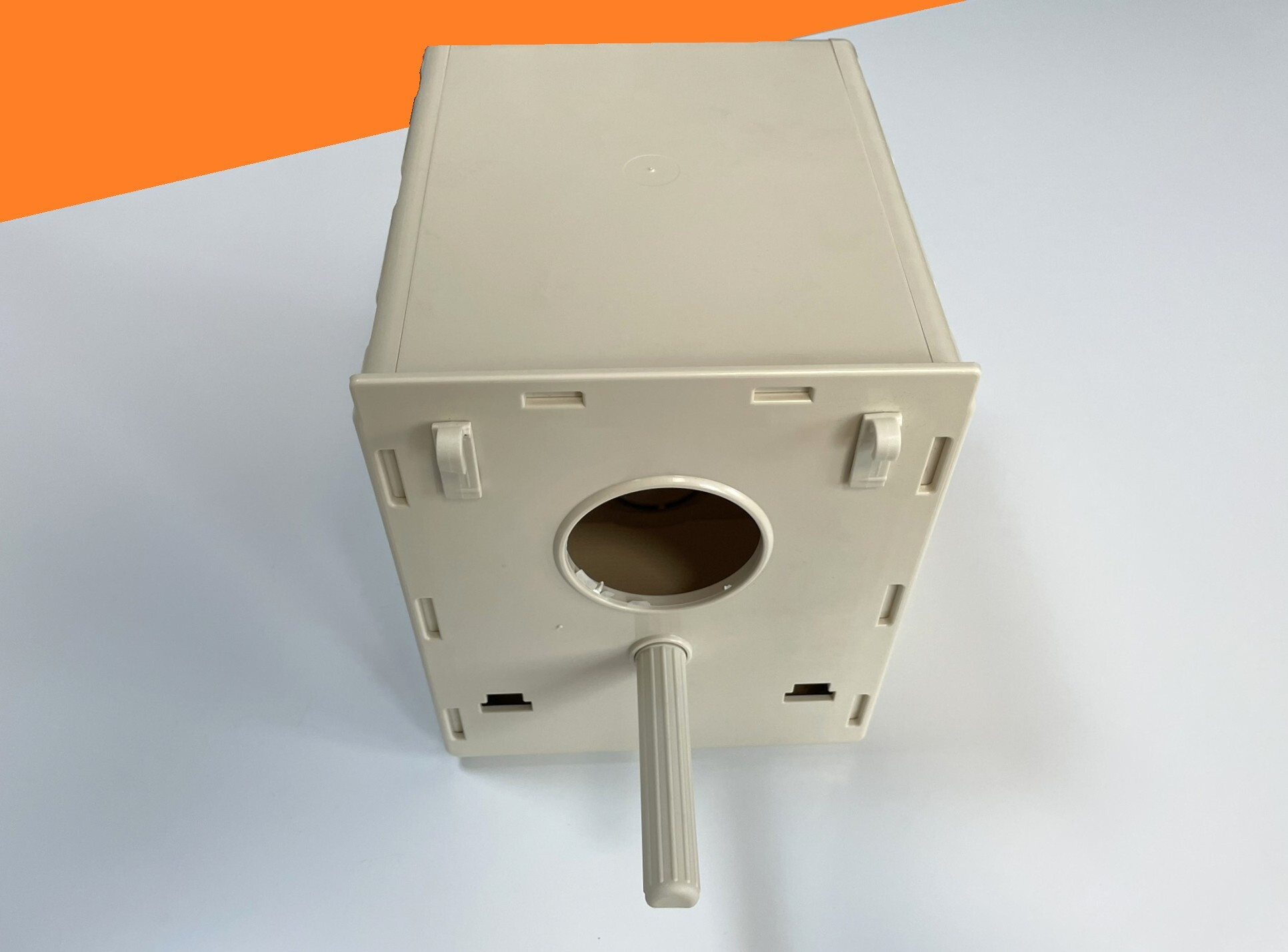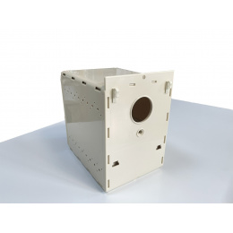 Plastové hnízdo pro malé papoušky, se snadnou údržbou.