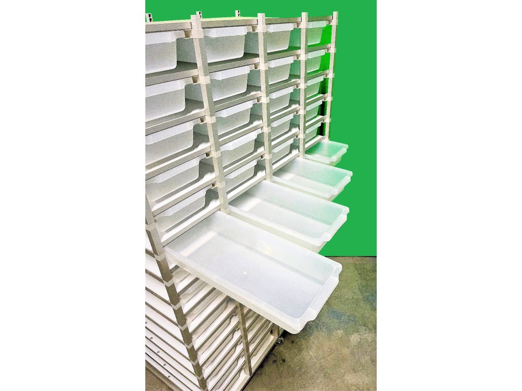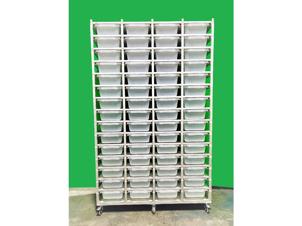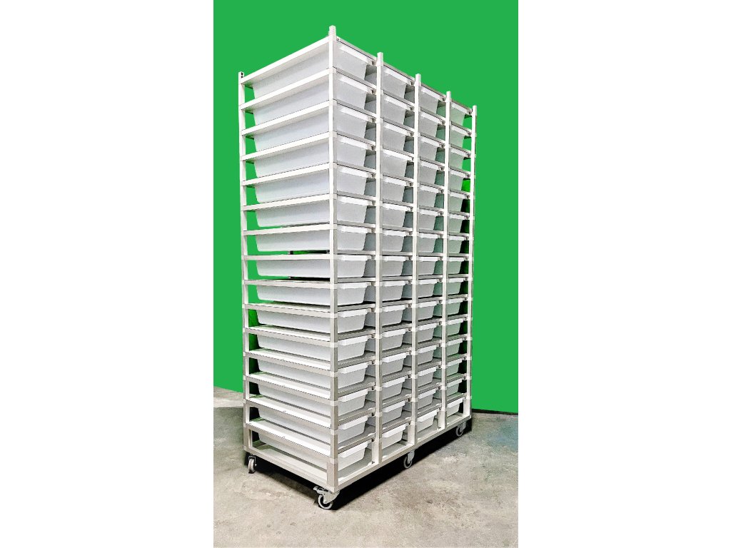 Chovatelský regálový Rack systém je často využíván ke komerčním i k hobby chovům. Jednotlivé bedny jsou zavěšeny v racku, stropy jsou z hliníkového sendviče. Jedná se o velmi odolný materiál. Do tohoto materiálu lze odvrtat dírky různých průměrů pro odvětrání. Kolečka s gumovou pryží a brzdou umožňují velmi jednoduchý a lehký pohyb s celým regálem. Na přání zákazníka můžeme Rack upravit jak do šíře, tak do výšky a počtu boxů.