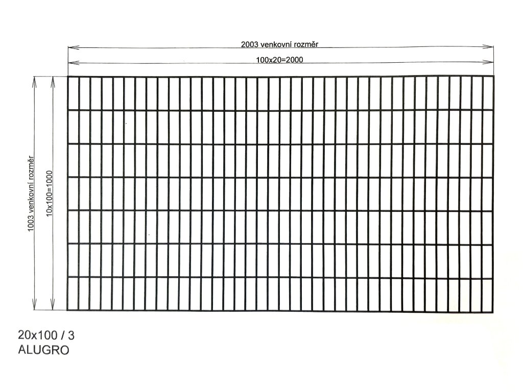 Síto, oko střed drátu na střed dalšího drátu je 100 a 20 mm, drát 3 mm. Velmi oblíbené síto a to nejen mezi chovateli, ale hojně se používá také v průmyslu k další výrobě drátěných stěn. Síto je galvanicky zinkováno a je běžně skladem. Při výrobě rámu při použití tohoto síta doporučujeme výběr našich speciálních profilů HJ20V nebo HJ20S.
