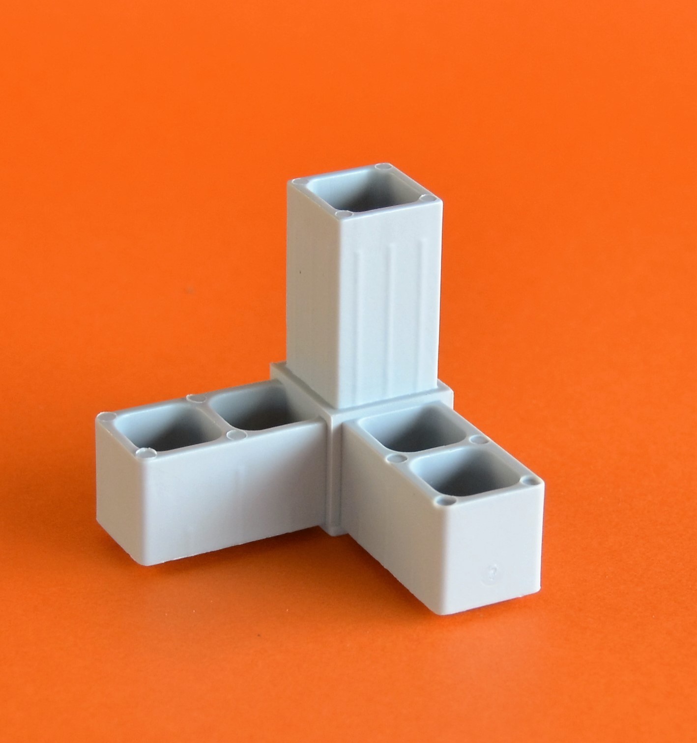 Součástí stavebnice jsou profily, spojky, dvířka, panty.