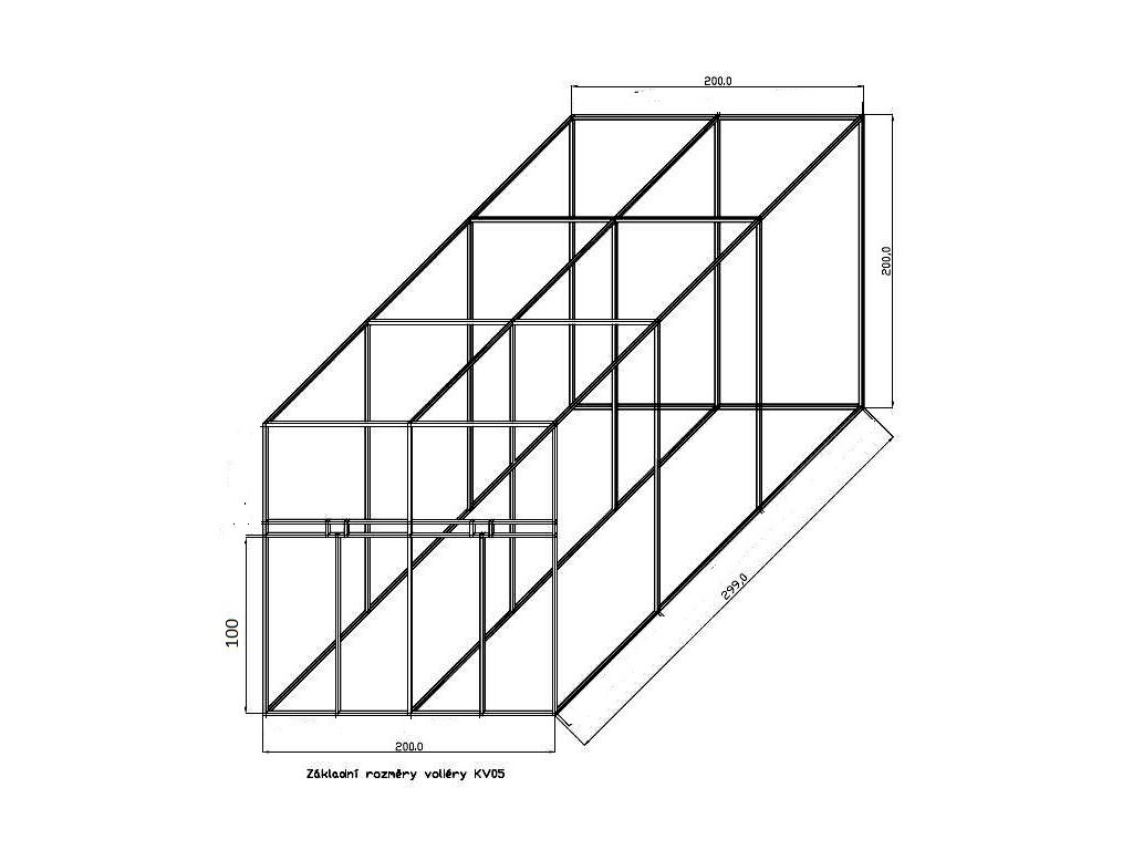 Součástí každé stavebnice konstrukce voliéry jsou hliníkové profily 20x20x1,5 mm, spojky, krmné pulty s miskami, dvířka, panty.