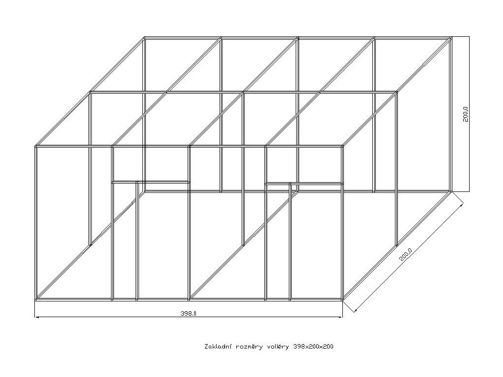 Součástí stavebnice jsou profily 20x20x1,5 mm, spojky, dvířka, panty. Výška dvířek je 1,4 m.