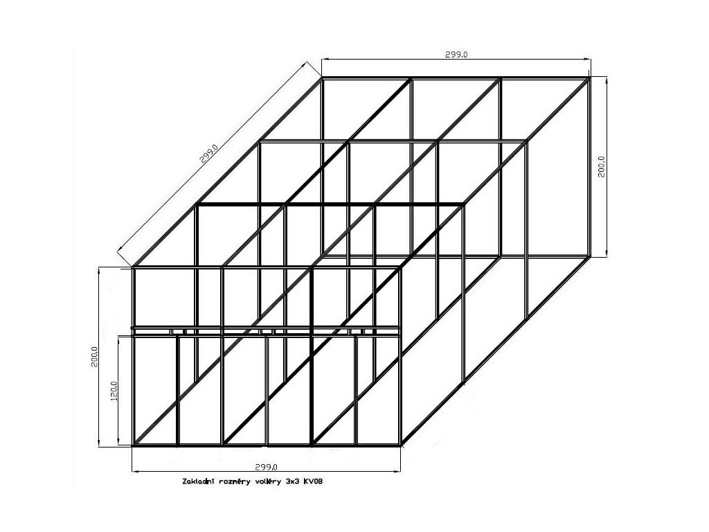 Součástí každé stavebnice konstrukce voliéry jsou hliníkové profily, spojky, krmné pulty s miskami, dvířka, panty. Krmný pult u tohoto typu stavebnic je umístěn 120cm nad zemí. Krmný pult má v sobě zamontovány dvě otočné desky. Jedna deska je určena pro umístění dvou nerezových misek o obsahu 2x 350ml.