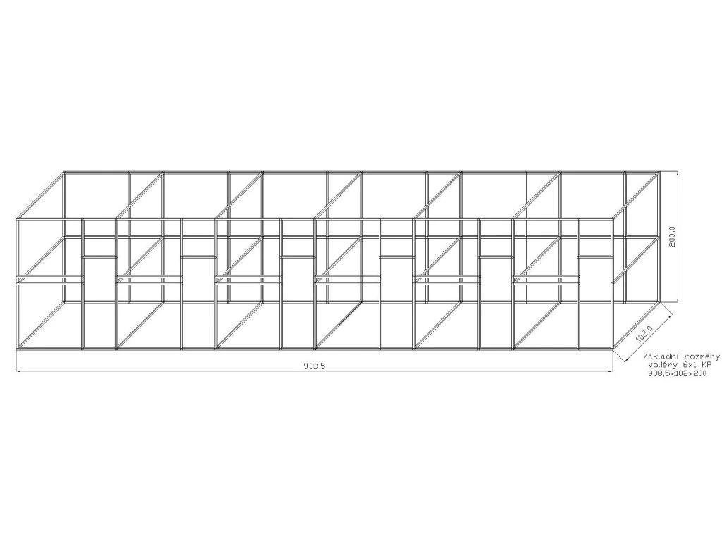 Šíře jednoho boxu je cca 153 cm. Konstrukce po sestavení tvoří jeden celek. Na vyžádání můžeme dodat konstrukci i ve stříbrném eloxovaném provedení, kde se cena konstrukce navýší o cca 13 %. Součástí stavebnice jsou dvířka do voliéry, panty a petlička. Rozměr samotných dvířek jsou: výška 134 cm, šíře 48 cm. Součástí stavebnice je rovněž krmný nerezový pult, kde zákazník má na výběr ze tří typů KPG05 , KPG07, KPG11. Vždy se jedná o krmné pulty zásuvné nerezové s gastronádobami. Gastronádoby mají na výšku 6 cm. Krmný pult KPG 11 jako jediný nabízí i možnost záměny misek s menší hloubkou. Místo 6 cm na 4 cm. Vybraný typ je potřeba uvézt do poznámek. Tyto krmné pulty oproti otočným krmným pultům mají hned několik výhod. Nádobu z krmného pultu nelze zvířetem vytáhnout. Před krmným pultem lze umístit bidlo. Nádoby pro svůj tvar elipsy a hloubku mají větší obsah než misky kulaté. Pletivo a úchytový materiál, není součástí stavebnice.