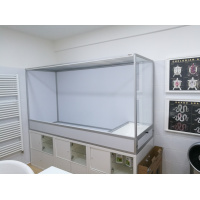 Výrobou terárií se zabýváme již několik let. Na stavbu terárií používáme profily 20x20 a 15x15 mm vždy v eloxovaném provedení, v barvách stříbrný matný a černý matný elox. Jako výplně stěn používáme hliníkový sendvič v barvě černá, stříbrná, bílá, zelená, černá zvenčí bílá uvnitř. Dále jsou to 10mm materiály jako je dutinkový materiál v barvě bílé, šedé a černé. Dalším z materiálů je bubble guard rovněž v barvě bílé, šedé a černé. Pokud budete chtít terárium nacenit, je důležitý nejen rozměr, ale i výška límců v přední stěně. Límec je potřeba dát také do horní části a to kvůli pevnosti. Dost často se do horního límce dává odvětrání. K výrobě odvětrání používáme hliníkový válcovaný tahokov s dírkou 2 mm. Terária vyrábíme na zakázku - na míru.
