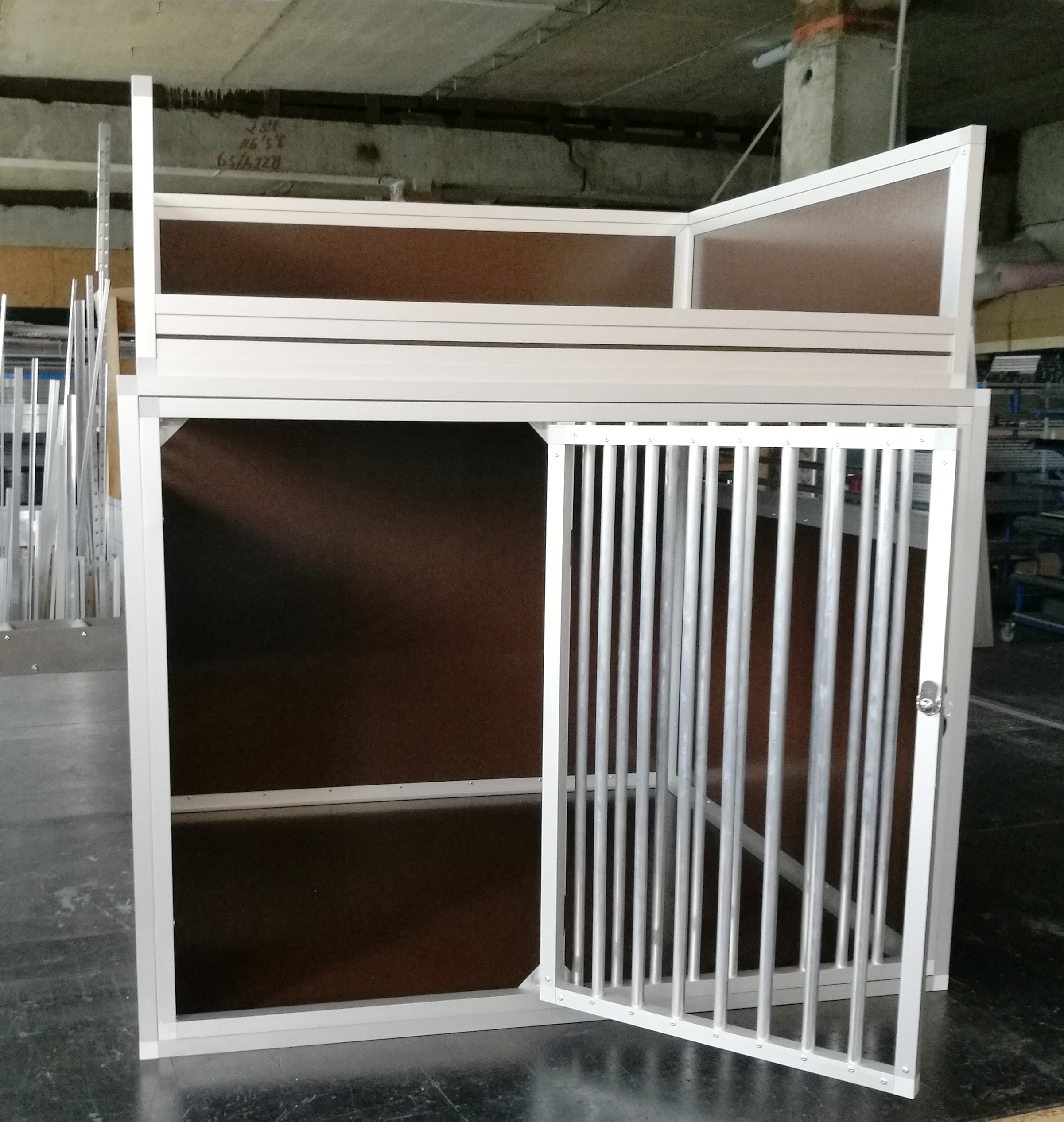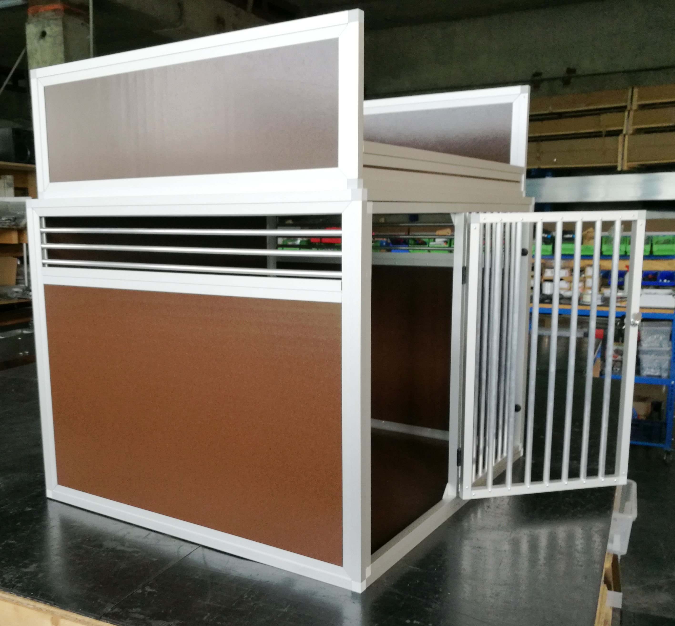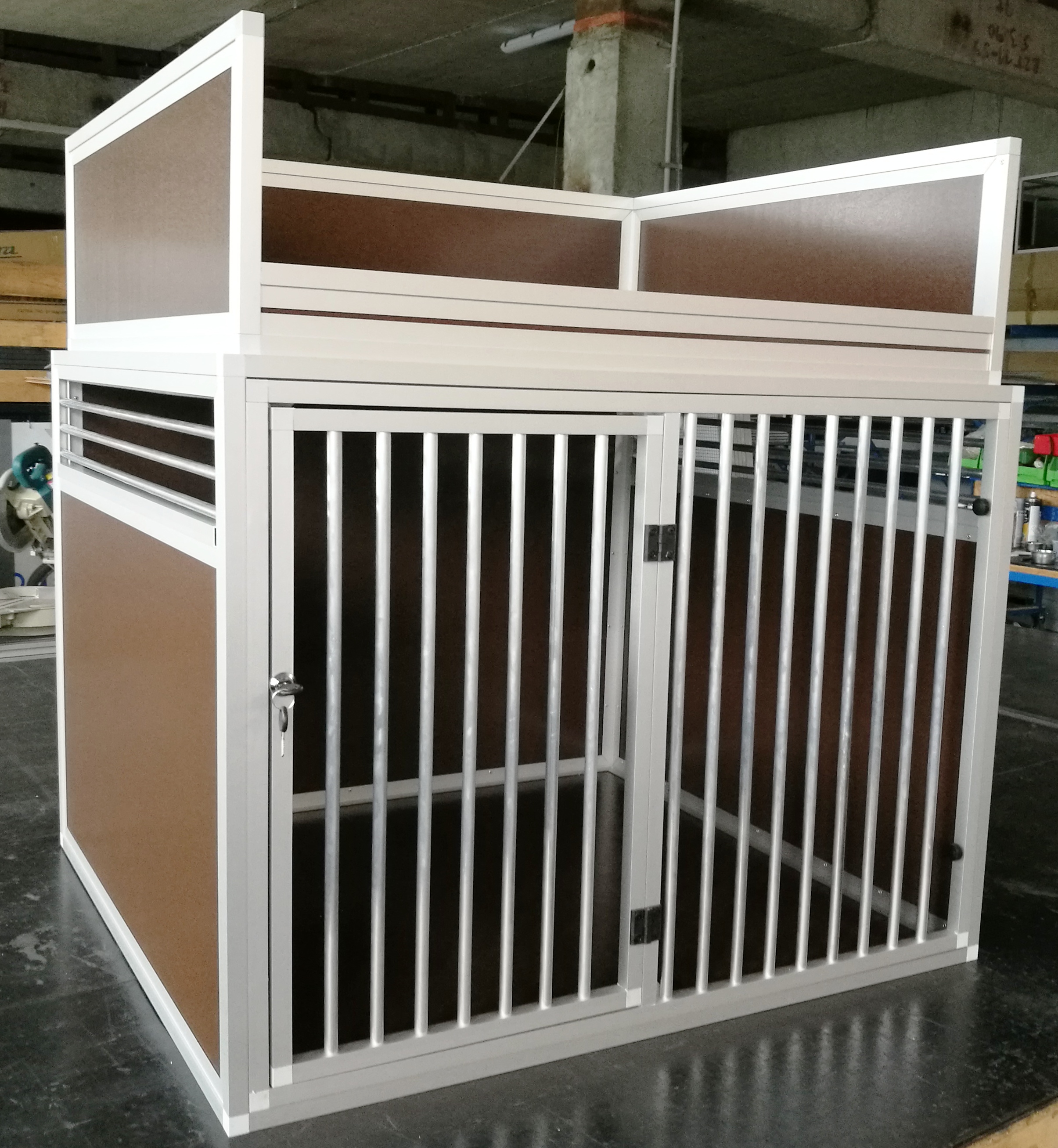 Tento přepravní box má opravdu nadstandartní rozměry šířka100cm hloubka 91cm a výška 130cm. Je určen pro velká plemena. Jedná se jednodílný box bez přepážky. Velmi zajímavá je celková boxu, pouze 28kg včetně odkládacího prostoru. Odkládací prostor je tvořen límcem 30cm vysokým, v přední části 8cm . Přední mříž jde jednoduchým způsobem vyjmout a prostor boxu využívat k přepravě aniž by se musel box vyndat z vozidla.