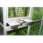 Rozměry voliéry hloubka 104cm, šířka 108cm, výška 213cm. Hliníkový rám s povrchovou úpravou stříbrný elox. Za příplatek 1150,- Kč může být konstrukce voliéry s povrchovou pravou černý elox. Cela voliéra je skládací a je složena z pěti rámů plus šuplík s roštem. Stěny tvoří síta oko 30x30mm síla drátu 3mm Tyto síta mají povrchovou úpravu černý zinek. Černé zinkování je naší doménou. Černá barva nejde zvířetem sloupat a pohled na zvíře je přes tyto síta výjimečný. Na přání zákazníka umíme do našich rámů vložit síta i se stříbrným zinkem, případně voliéru upravit a použít Italská pletiva s menšími oky a tenčím drátem. Výplně v této voliéře jsou vyrobeny z velmi kvalitního a oblíbeného materiálu kterému říkáme hliníkový sendvič. Stěna s výplní může být pouze zadní. nebo kombinace zadní a jedna boční. U této voliéry umíme nabídnout pouze jeden typ našich foto tapet a to v provedení prales. Pokud se zákazník rozhodne pro dvě plné stěny (zadní a boční) s foto tapetou, jedná se o jeden velký obraz, který ve zlomu voliéry do pravého úhlu na sebe navazuje. Díky tomu voliéra dostává velmi elegantní a netradiční vzhled. Krmný pult umístěný ve voliéře je celonerezový , zásuvný s gastro nádobami . Šuplík je z černého svařovaného plastu o síle 5mm. Tento šuplík je na kolečkách což umožňuje lepší manipulaci se šuplíkem. Horní okraje šuplíku jsou zakryty roštem z hliníkových profilu a to tak, aby papoušek neměl přístup k plastu s možností poškodit šuplík. Rošt je umístěný na šuplíku a vysouvá se z voliéry přímo se šuplíkem.