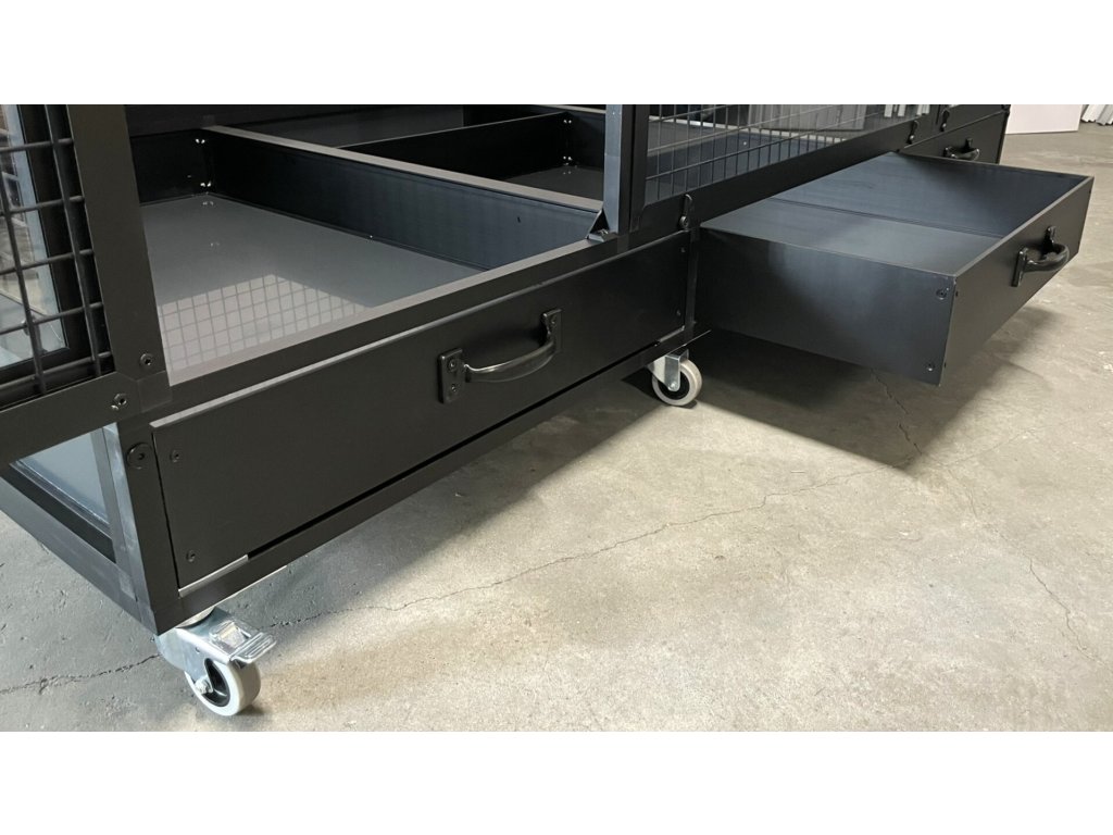 Přední stěna je vybavena nerezovým krmným pultem. Jedná se o krmný pult, kde jsou použity velmi praktické a velmi oblíbené gastronádoby. Krmné pulty jsou navrženy tak, aby zvířeti znemožnily vytáhnout a vysypat misku s krmivem.