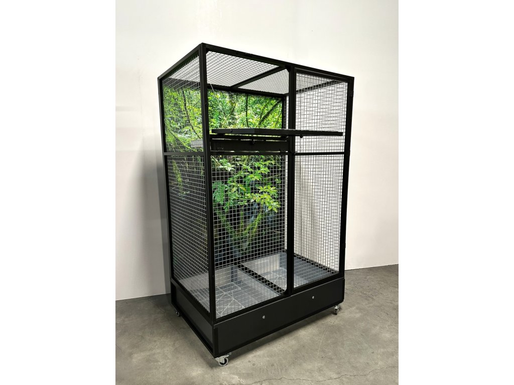 Voliéra je postavena na samostatném podvozku, který je vybaven dvěma plastovými vaničkami - pro lepší manipulaci při úklidu voliéry. Vaničky jsou 18 cm hluboké, což umožňuje udržet pořádek v okolí voliéry.