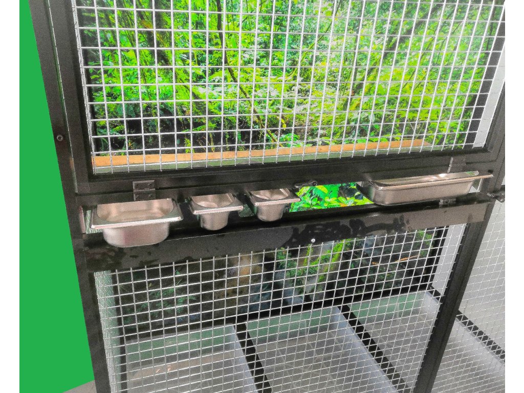 Voliéra je postavena na samostatném podvozku, který je vybaven třemi plastovými vaničkami pro lepší manipulaci při úklidu voliéry. Vaničky jsou 18 cm hluboké, což umožňuje udržet pořádek uvnitř voliéry.
