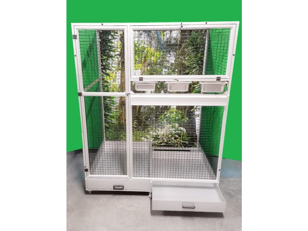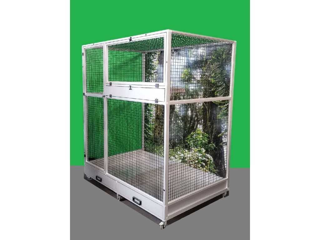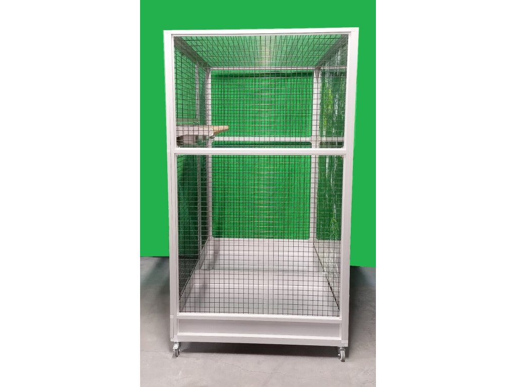 Moderní, velmi prostorná voliéra z dílny Aluhobby. Voliéra je rozebíratelná – skládací, což umožňuje postavit voliéru i tam, kde by v minulosti bylo možno umístit pouze klec. Skládá se z podvozku, přední a zadní stěny, dvou bočních stěn a stropu. Zadní stěna může být polepena tapetou dle výběru. Tapeta je laminována a tím chráněna proti oděru. Voliéra je postavena na samostatném podvozku, který je vybaven dvěma hliníkovými šuplíky. Šuplíky jsou vysoké 12 cm, což umožňuje udržet pořádek uvnitř voliéry.