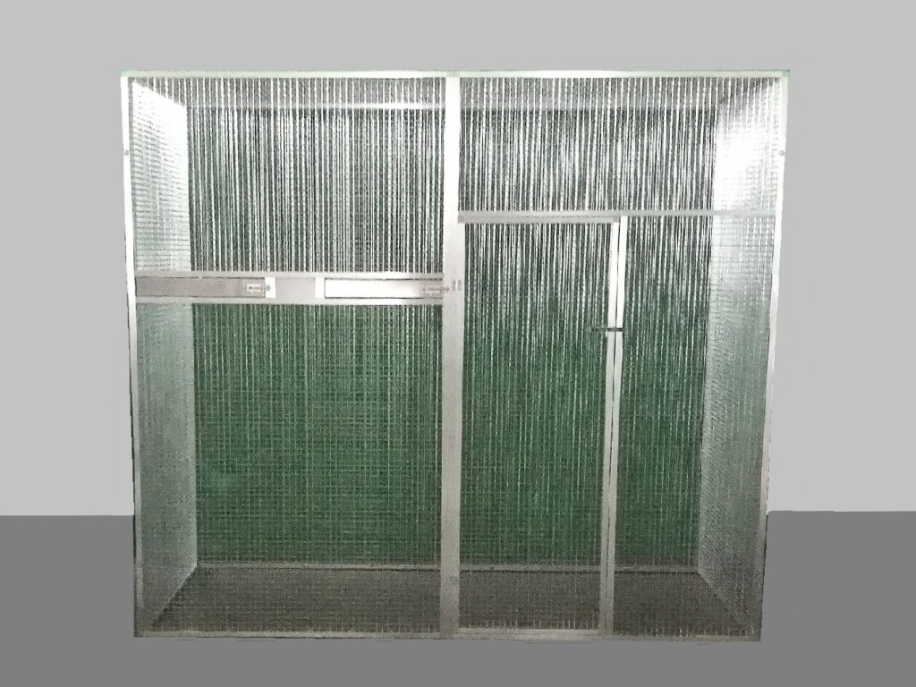 Voliéru lze jednoduše složit a opětovně rozložit. Po domluvě, je možné pletivo vyměnit za výplň z hliníkového kompozitu, tvrzeného PVC nebo plexiskla.