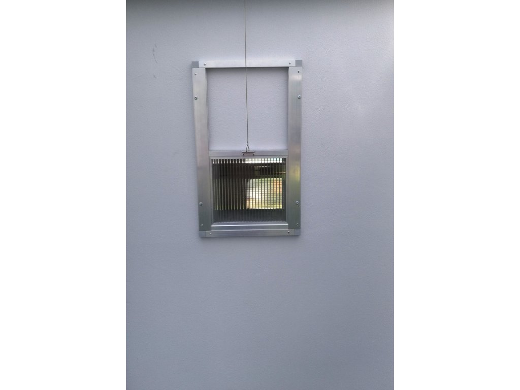 Výletové okno je vyrobeno z hliníkových profilů. Pojezd okna je vypodložen plastovým materiálem pro lepší posuv. Síla polykarbonátu je 10 mm.