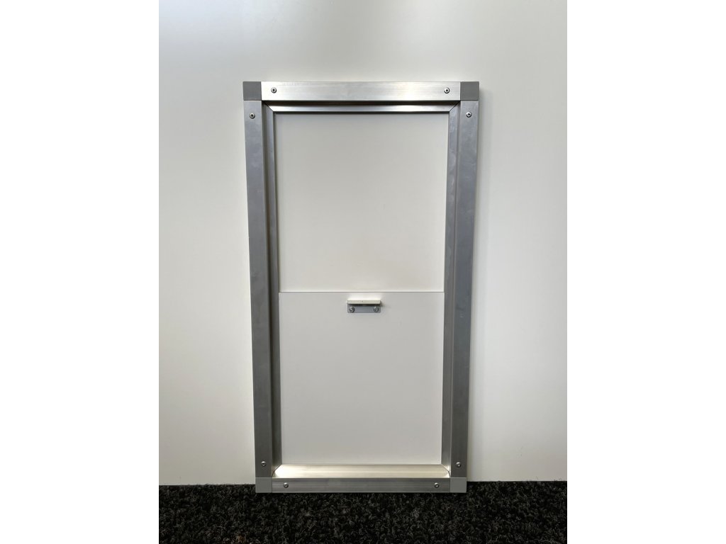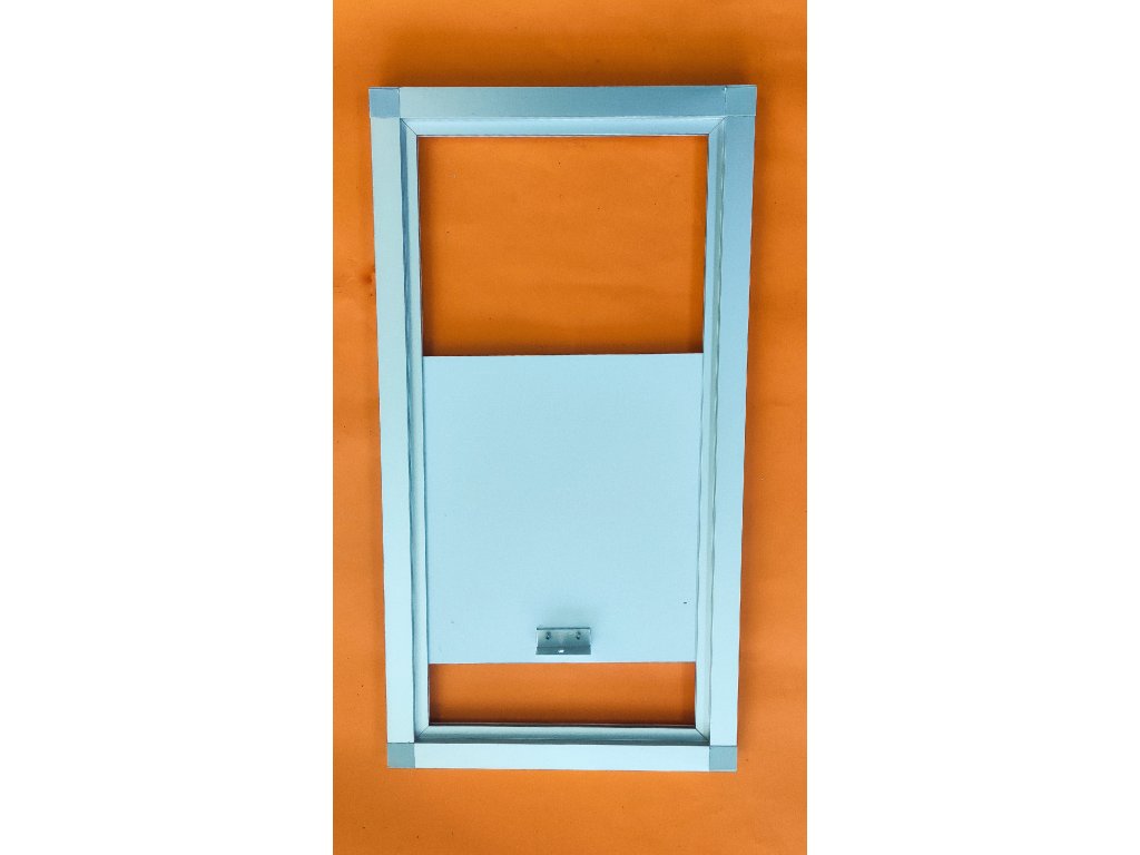 Výletové okno je velice jednoduché a lehké. Okno je celohliníkové a jako výplň je použitý hliníkový sendvič (3 mm).