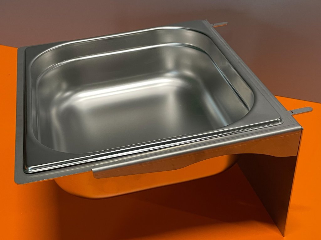 Nerezový rám/nosník je vyroben z nerezového plechu. Stěna, která se opírá o pletivo má rozměr 380 x 200 mm. Je to dostatečně velké plocha, aby zabránila průhybu pletiva při zavěšení. Koupací vaničku lze jednoduchým způsobem zavěsit na pletivo, rovněž lze i stejným způsobem vyjmout. Je velmi dobré v objednávce uvést do poznámky velikost oka v pletivu, případně i sílu drátů.