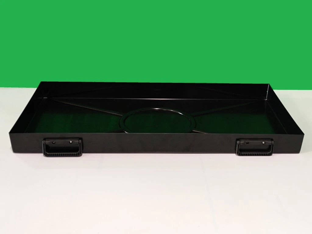 Celoplastový výsuvný šuplík v černé barvě s úchyty.