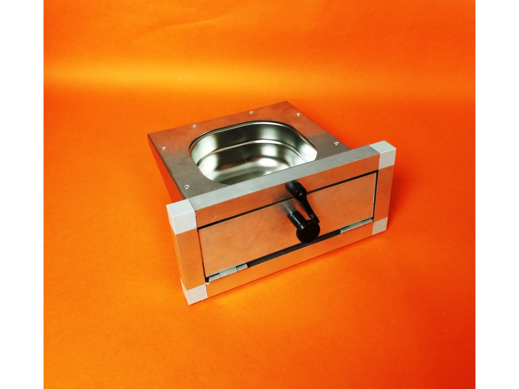 Krmný pult je dodáván ve složeném stavu včetně rámečku. Rámeček je tvořen z hliníkového profilu 20x20x1,5 mm. Pokud se zákazník rozhodne zabudovat krmný pult přímo do konstrukce voliéry je ideální nechat si zaslat krmný pult a rámeček samostatně. V rámečku pak lze jednoduše zaměnit spojky a zabudovat pult přímo do konstrukce.