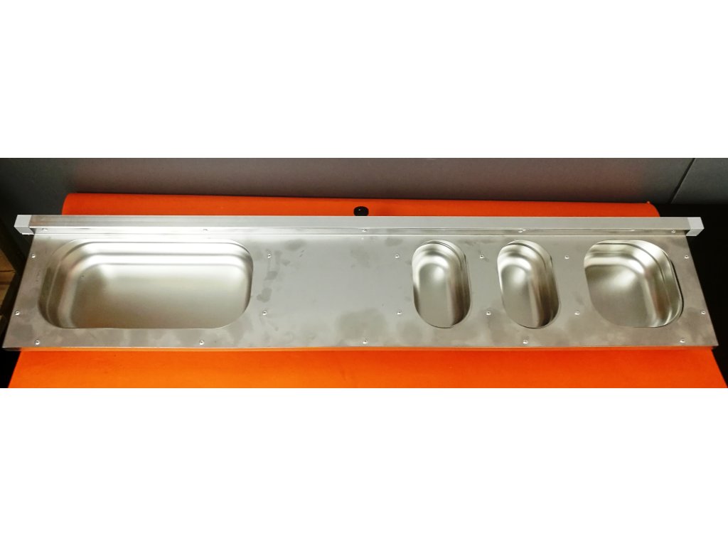 Krmný pult obsahuje: jednu misku o objemu 3 l na vodu, druhou misku o objemu 0,6 l na ovoce, zeleninu, třetí misku o objemu 0,6 l na zrno a čtvrtou misku o objemu 1,3 l.