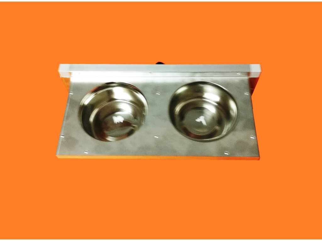 Krmný pult obsahuje: jednu misku o objemu 750 ml na vodu, druhou misku o objemu 750 ml na ovoce, zeleninu.